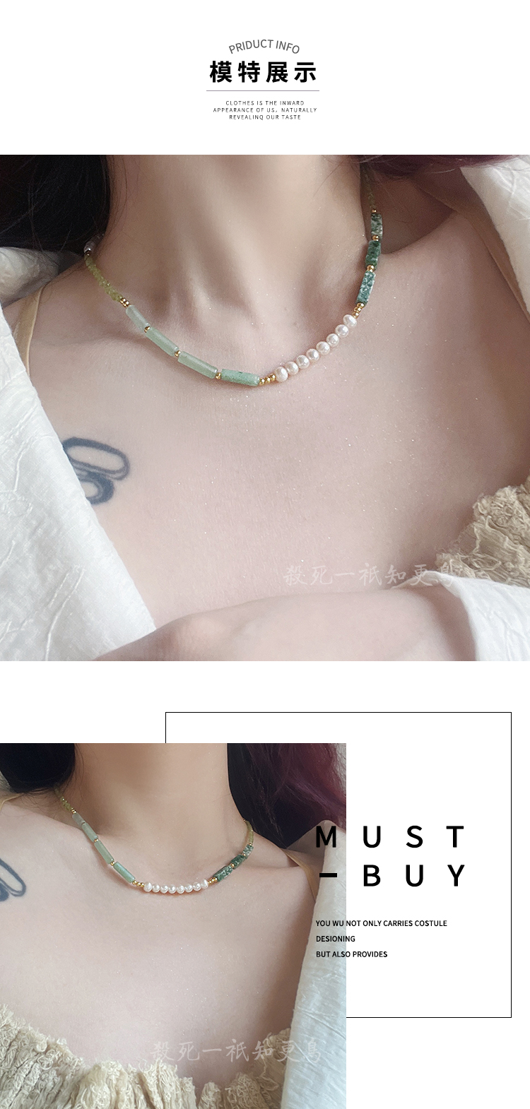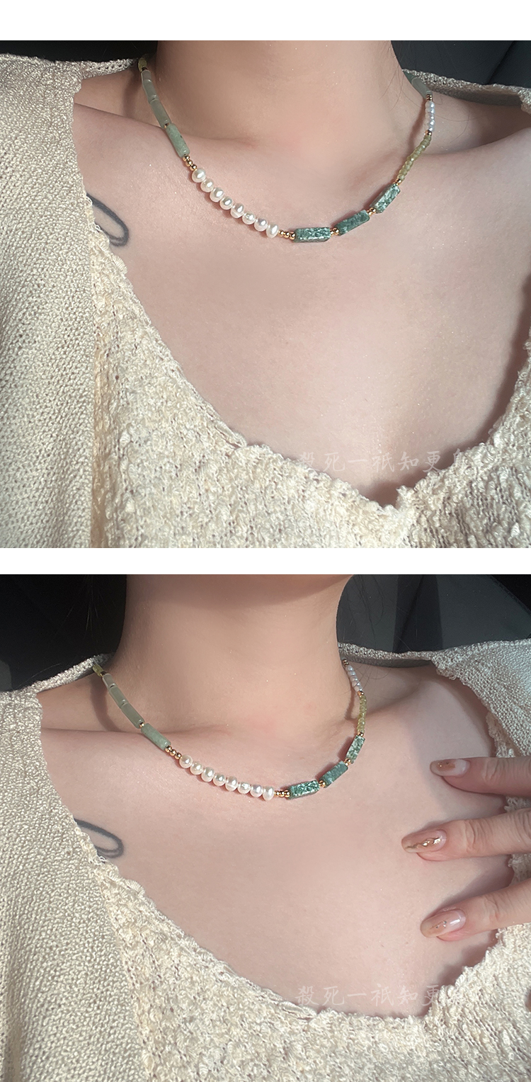 知更鳥|青玉案 復古新中式國風小眾釉玉水晶天然珍珠項鏈鎖骨鏈
