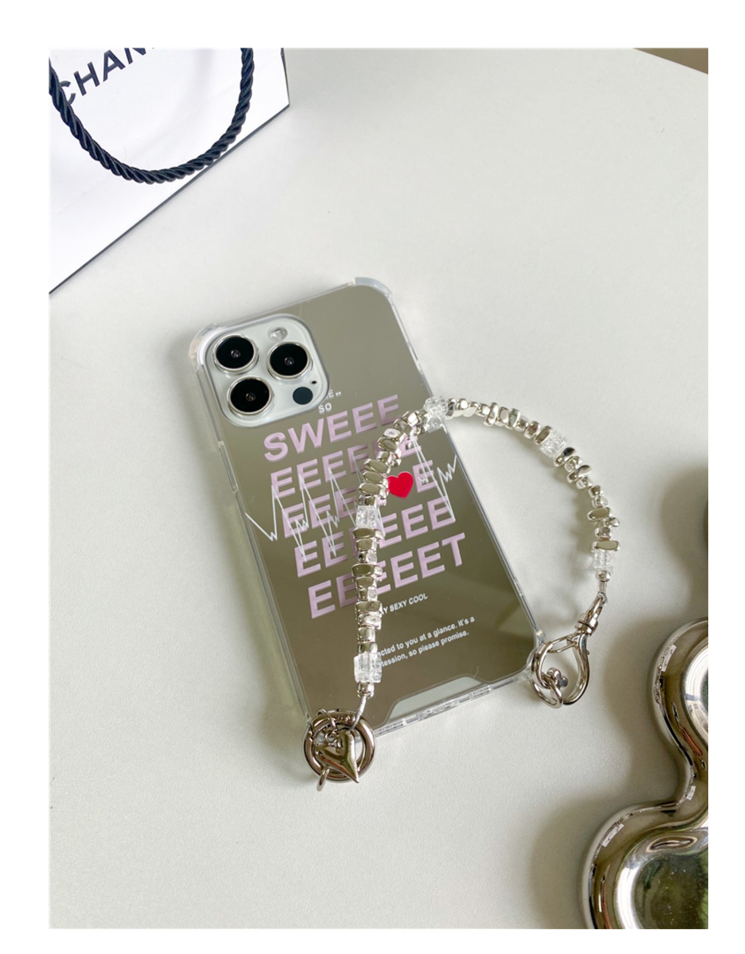Y2K風格鏡面愛心碎銀子手提鏈條適用蘋果iPhone14 13promax手機殼