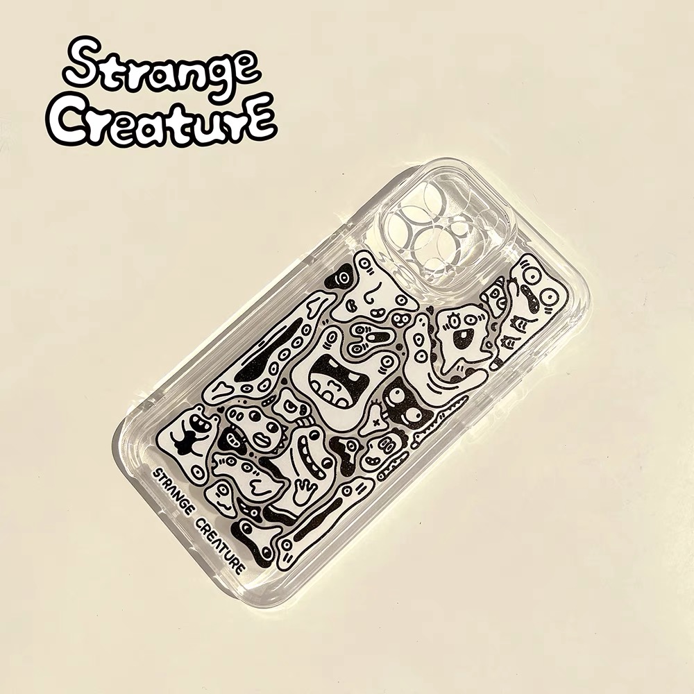 適用蘋果13promax太空手機殼iphone11保護潮牌涂鴉小怪獸12情侶同款7 8plus個性xr夏新款mini高透se趣味軟包6
