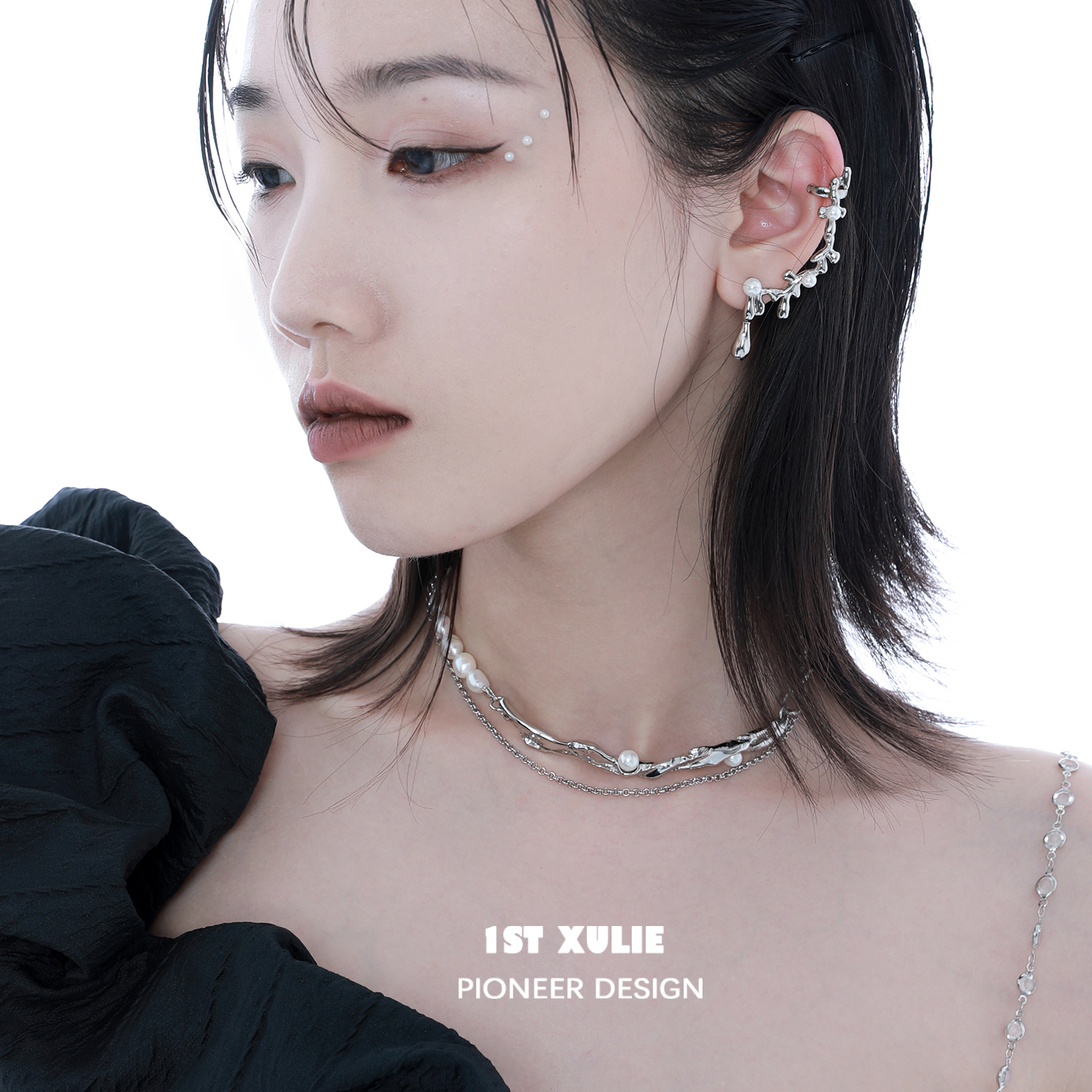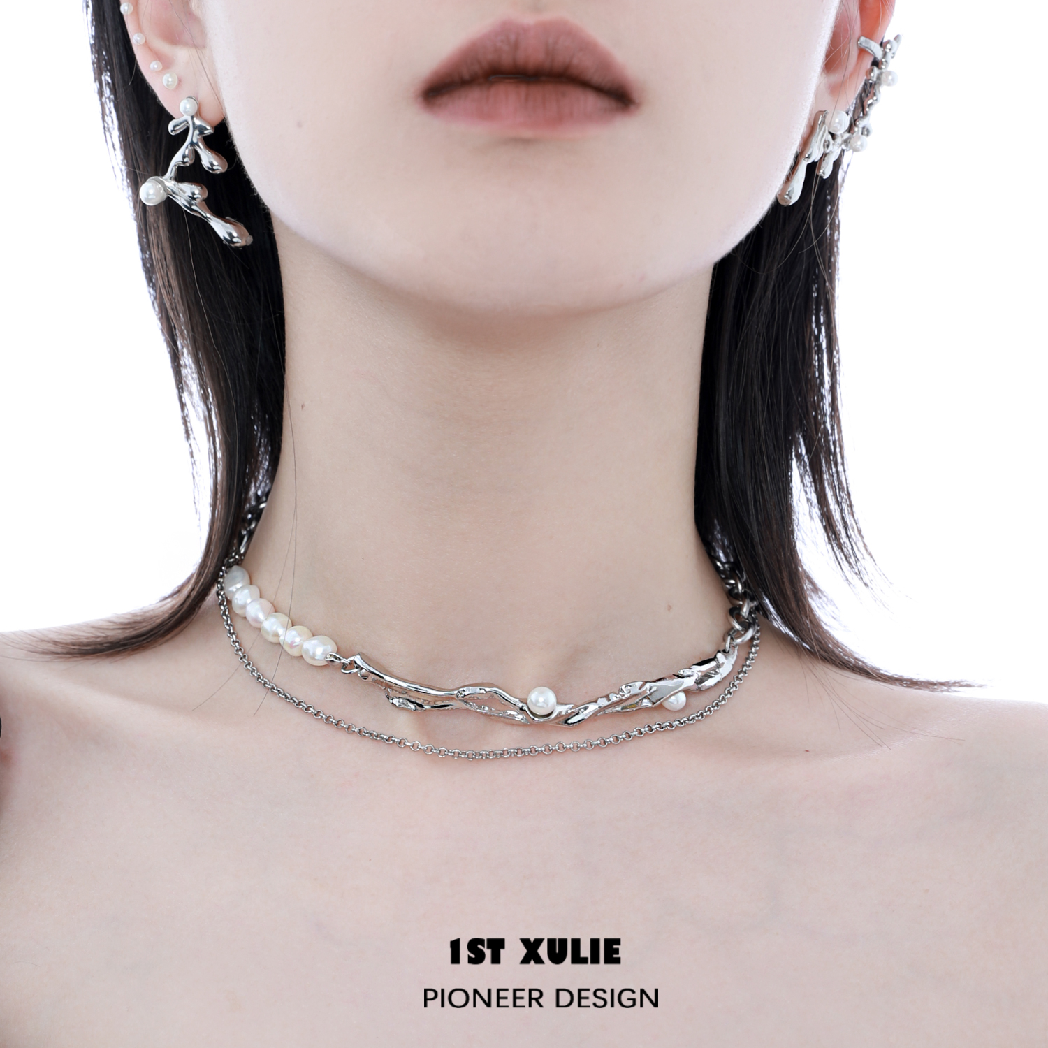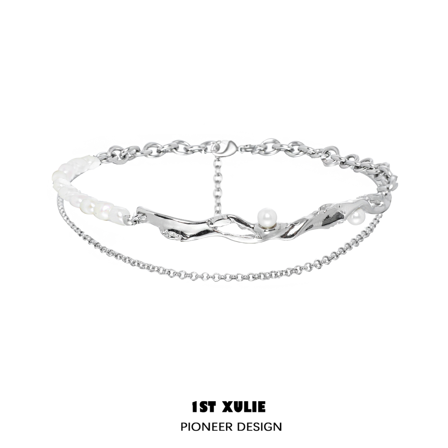 1STXULIE碎銀子珍珠項鏈女原創小眾設計高級感鎖骨鏈純銀不掉色
