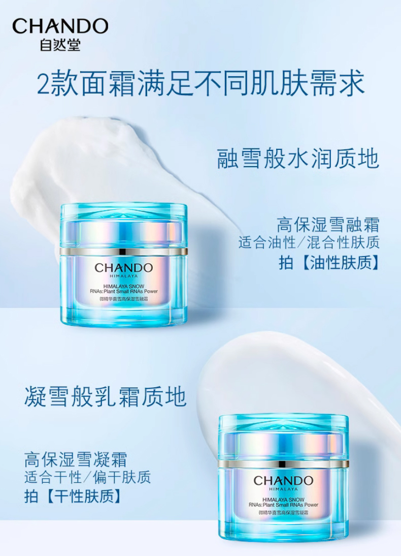 自然堂微精華喜雪高保濕雪凝霜雪融霜面霜光彩提亮官方旗艦店官女