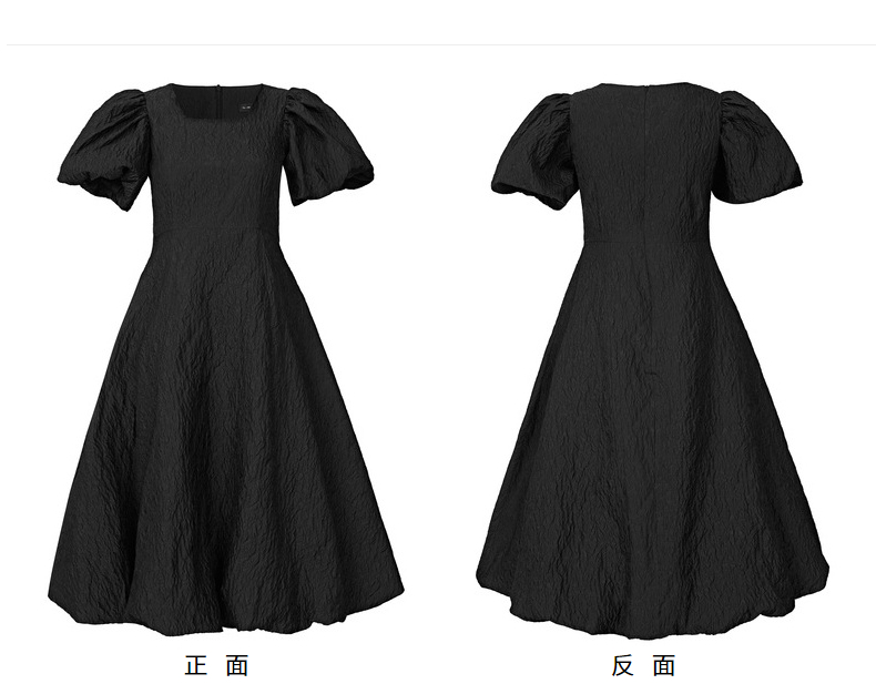 sdeer圣迪奧女裝泡泡袖連衣裙夏裝甜美方領肌理黑色長裙S22281237