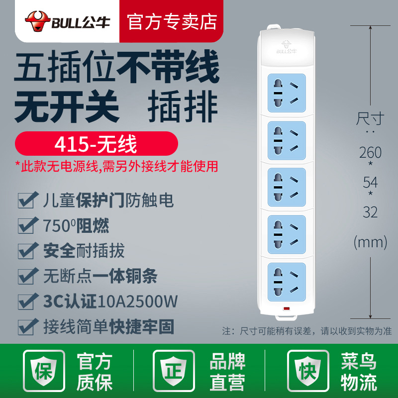 公牛正品不帶線插板單插排電源插座101/102無線自己接線排插線板