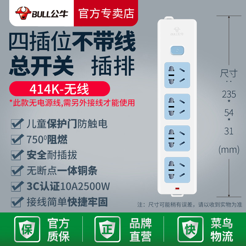 公牛插排不帶線正品單插板無線插座412K多孔位迷你多用小排插線板