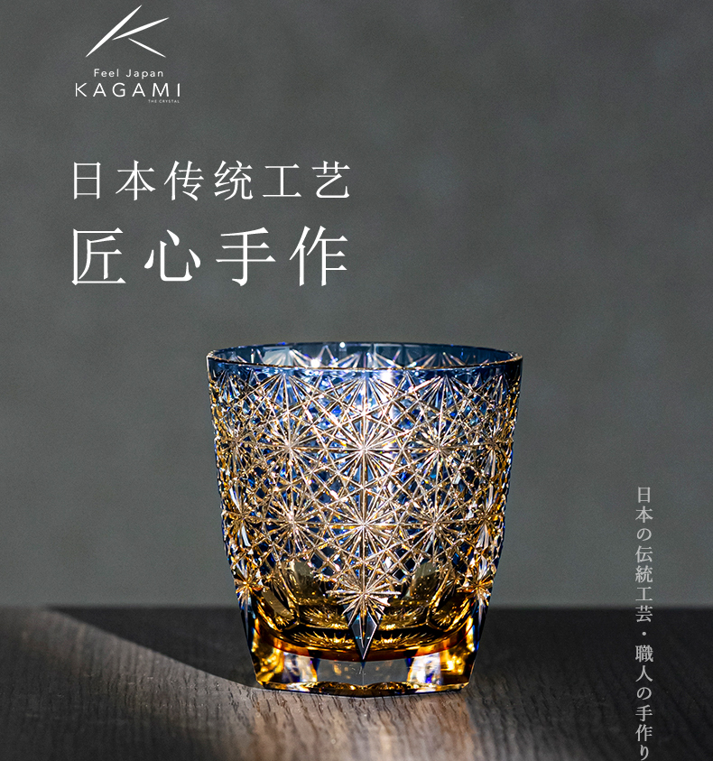 日本KAGAMI江戶切子杯森羅萬象刻花杯筱崎英明水晶玻璃威士忌酒杯