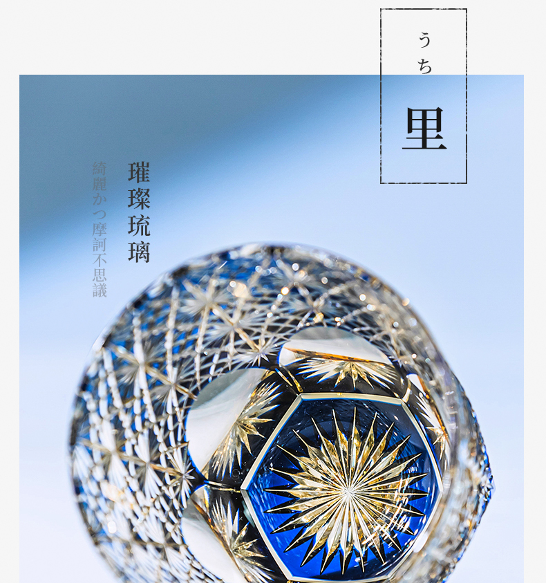 預售日本KAGAMI江戶切子藍雛菊套色水晶玻璃洛克杯威士忌酒杯刻花