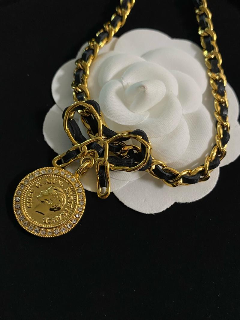 yuwelry明星同款vintage中古羊皮編織蝴蝶結choker金幣頸鏈項鏈