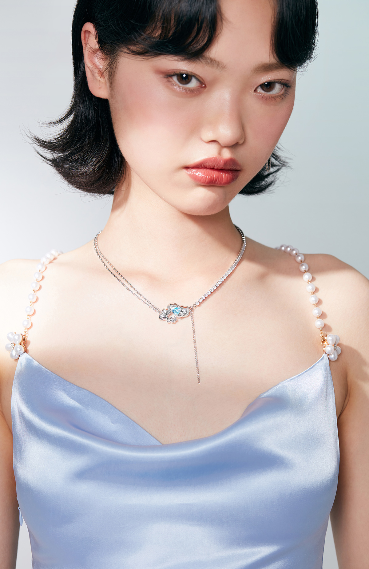 dodogogo金屬云朵藍鋯項鏈女輕奢小眾設計雙層鎖骨鏈頸鏈飾品潮夏