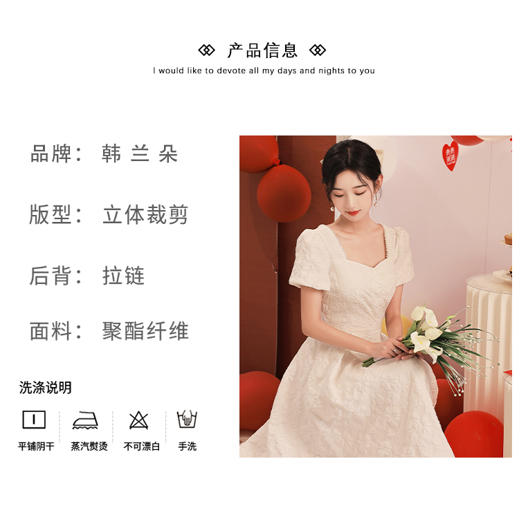 復古訂婚連衣裙平時可穿大氣敬酒服新娘白色小禮服領證登記小白裙