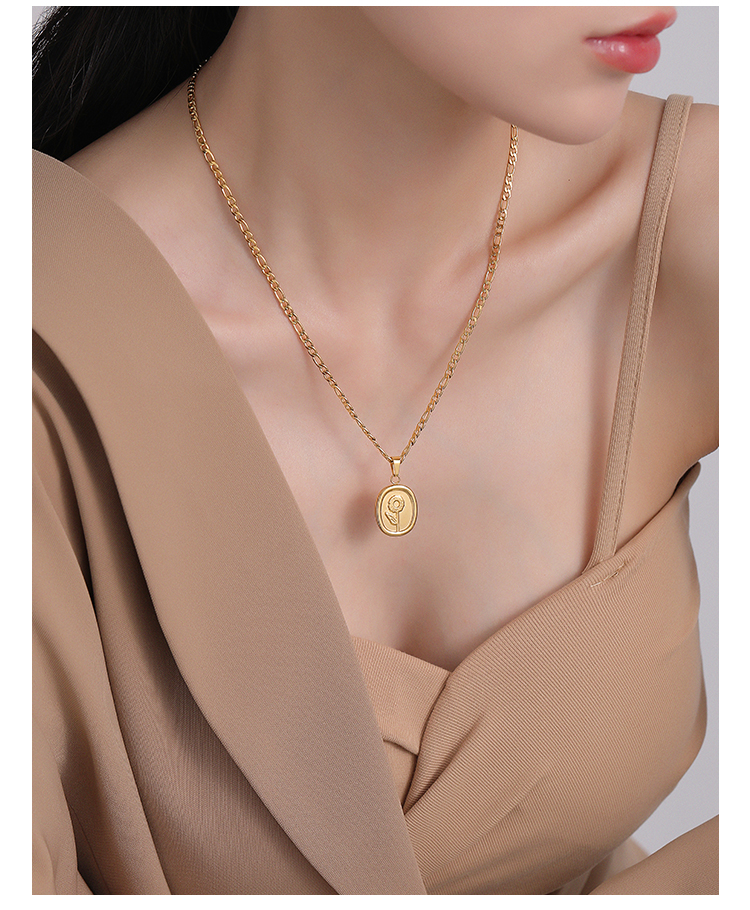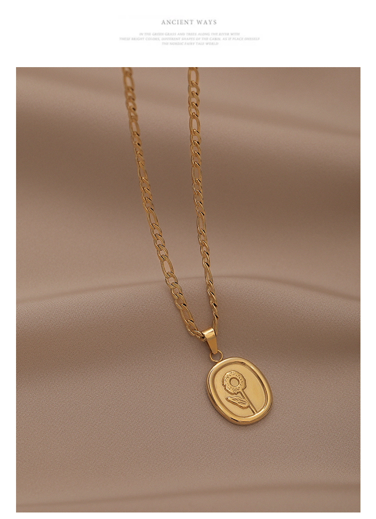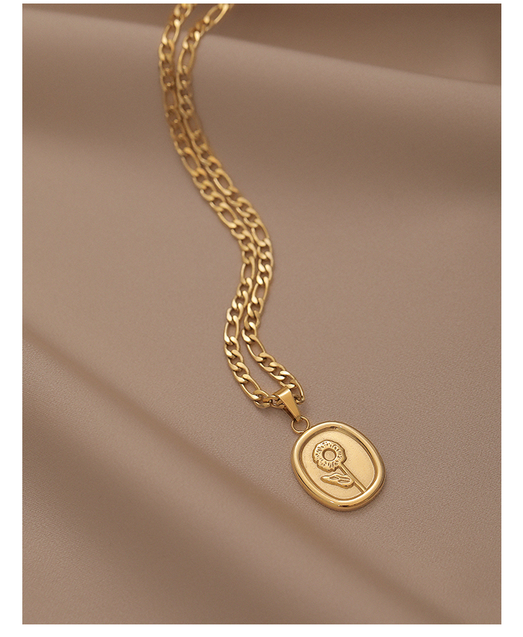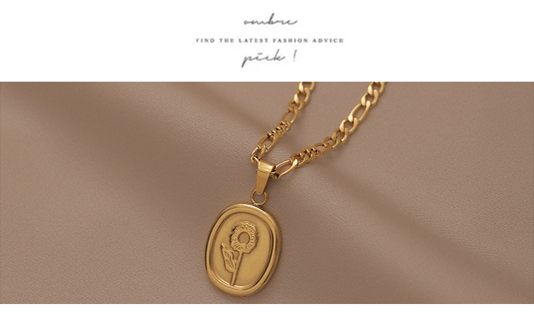 憶愛復古港風飾品橢圓牌向日葵吊墜項鏈女輕奢小眾設計金色鎖骨鏈