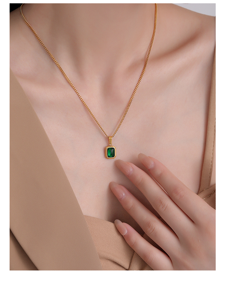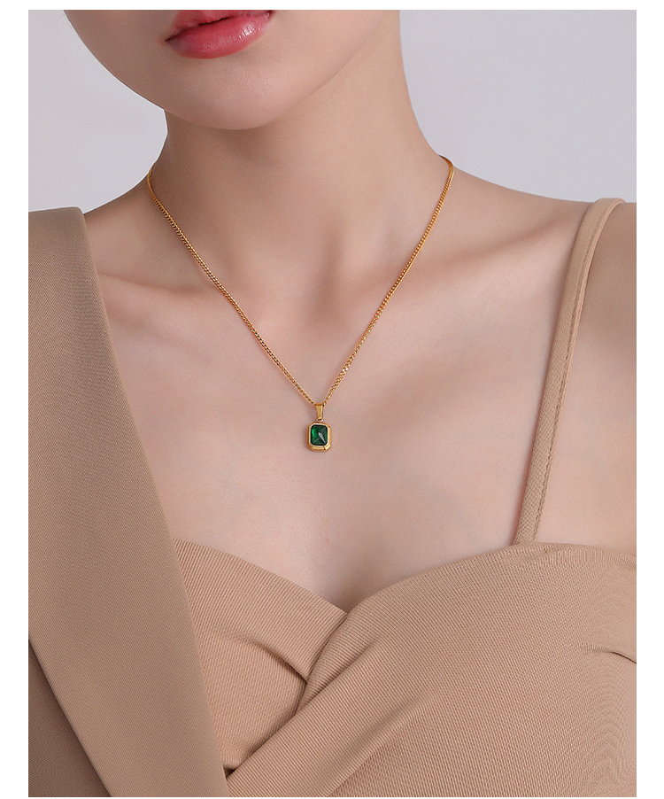輕奢復古祖母綠吊墜項鏈女鍍K金小眾設計高級感2023新款頸鏈配飾