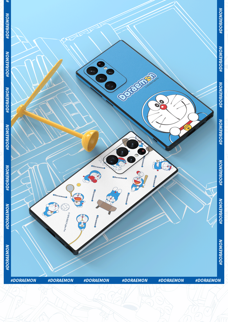 三星s22手機殼哆啦A夢正版S22ultra新款鏡頭全包s22+直邊皮紋防摔保護套Galaxys22ultra叮當貓s22男女款適用