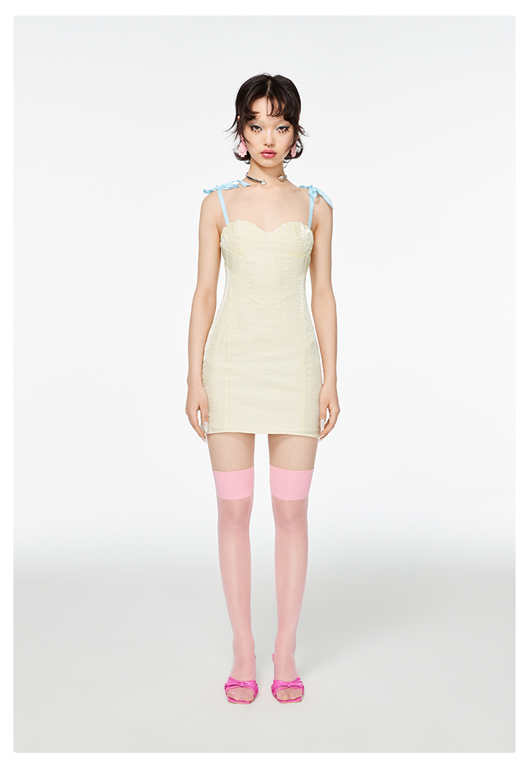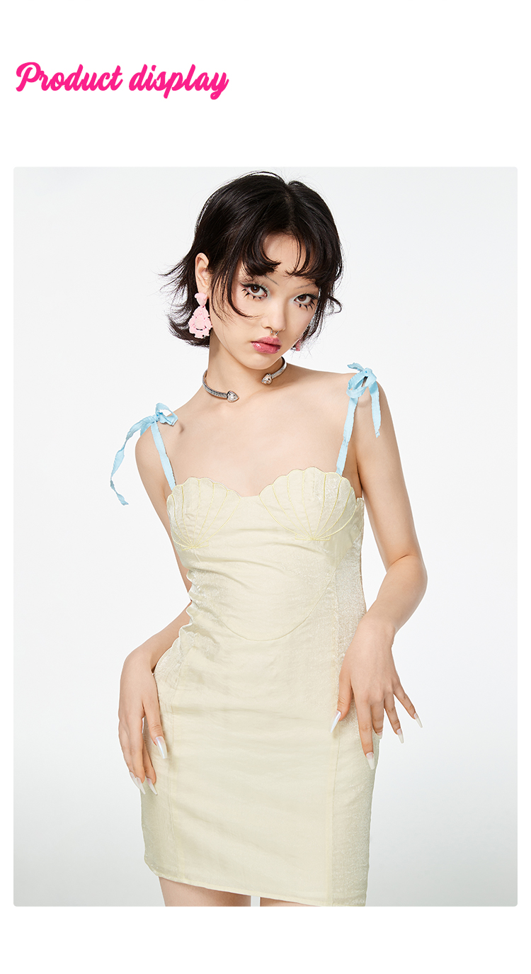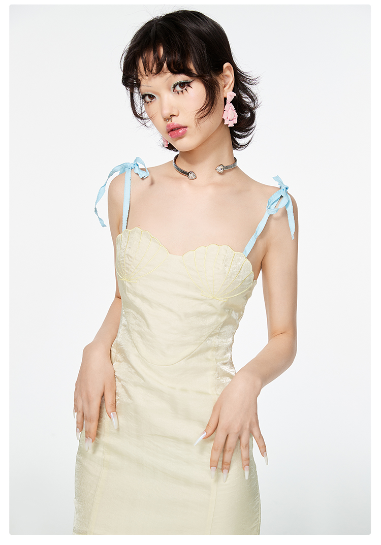 ECODAY貝殼紋連衣裙女2022夏高端氣質設計感小眾性感辣妹風吊帶裙