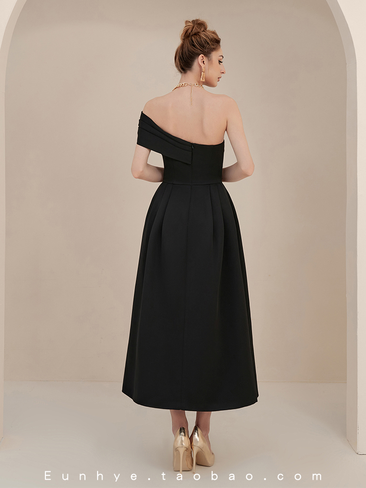 越南小眾品牌Tracy 2022夏季新款斜肩氣質修身氣場女王連衣長裙