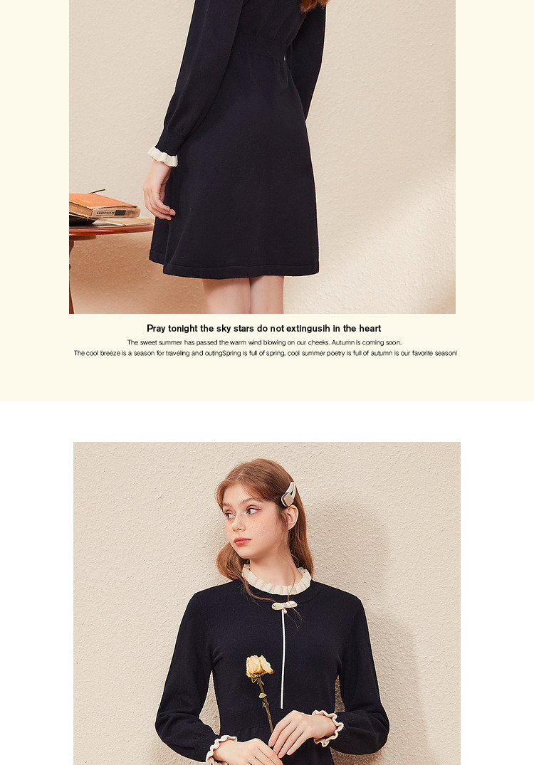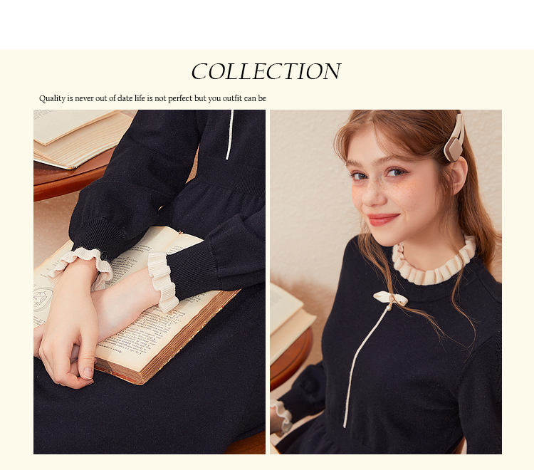 針織連衣裙女非正式學院風垂墜感kbne2023秋冬新款氣質長袖裙子