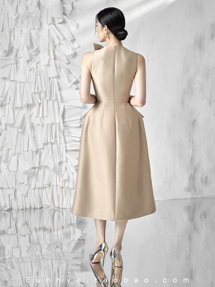 越南小眾DELICATE 2022夏季新款無袖蝴蝶結裝飾收腰純色氣質長裙