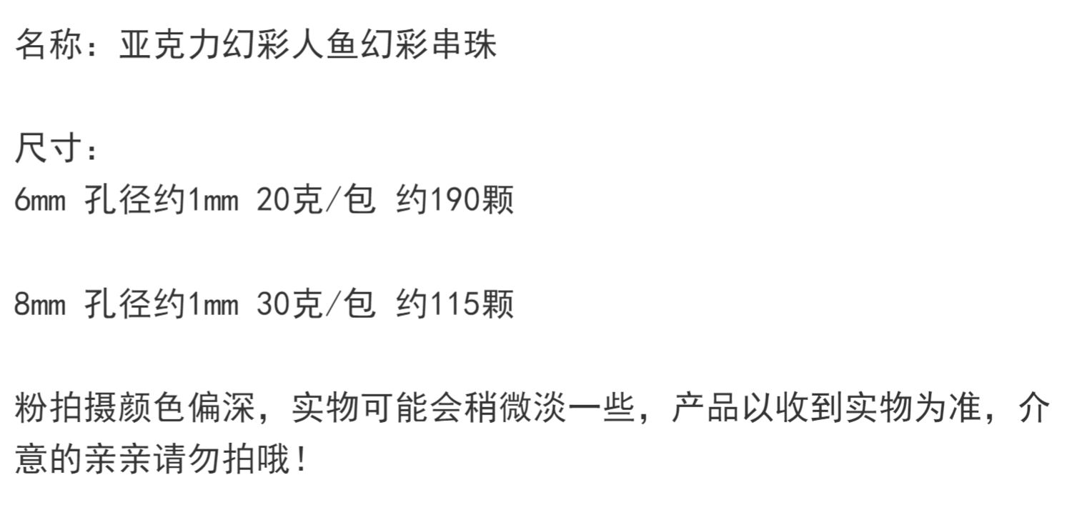 亞克力幻彩人魚圓珠子 diy手工自制手鏈耳環串珠材料項鏈飾品配件