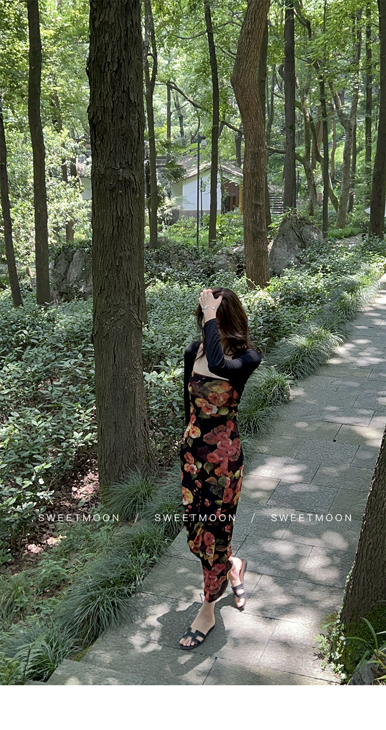 剁椒sweetmoon清冷鳶尾吊帶包臀裙