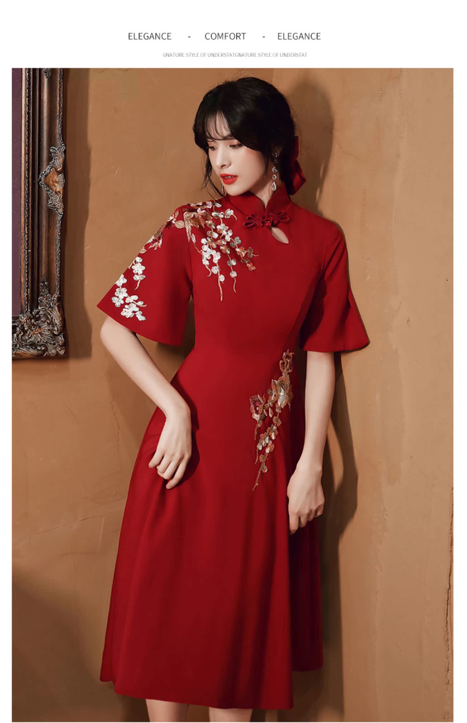 旗袍敬酒服新娘訂婚結婚回門小個子顯瘦禮服連衣裙女中式便裝夏季