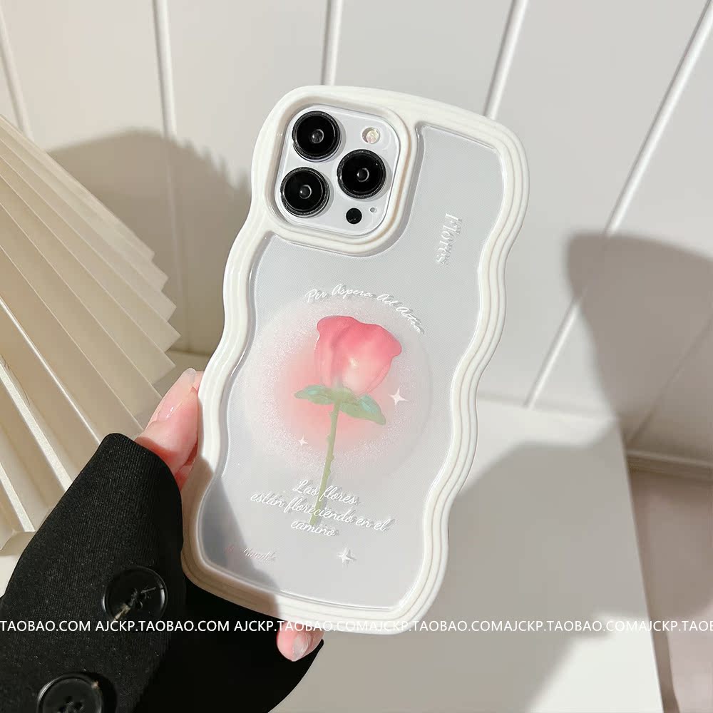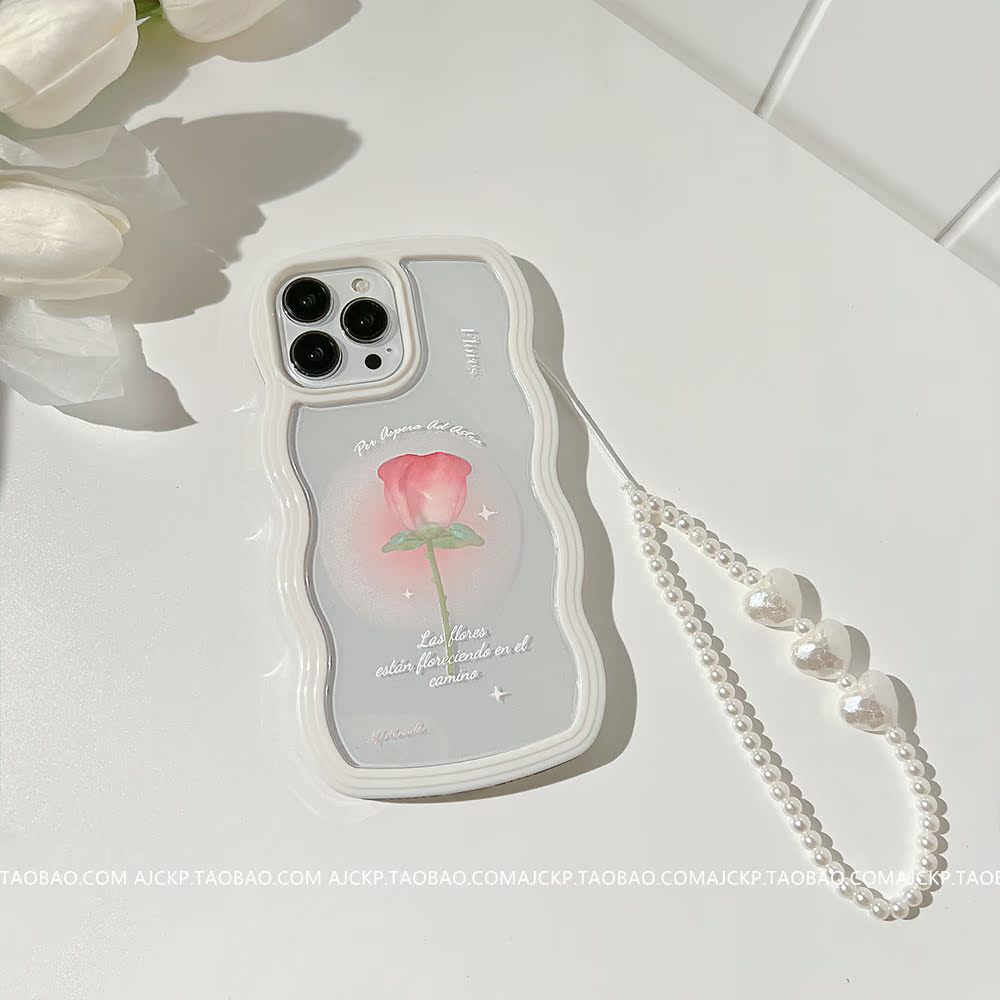 AJCKP ins玫瑰花朵適用iPhone15promax蘋果13手機殼14帶鏈條xs軟女