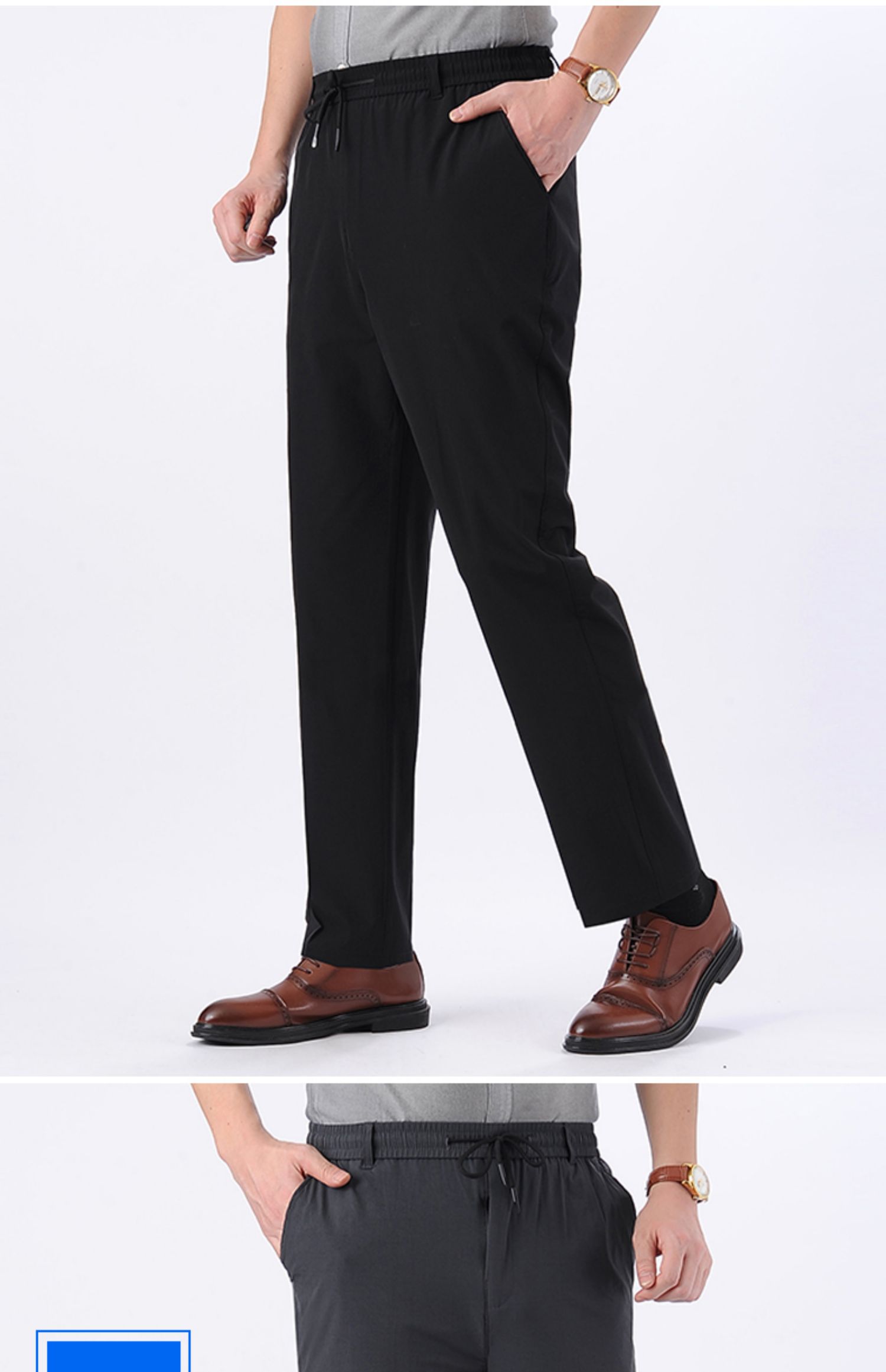冰絲速干爸爸褲子夏季薄款男褲松緊腰中年男士休閑褲中老年人長褲