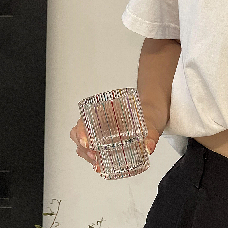 北歐ins彩繪豎條紋彩繪玻璃杯會折射彩虹光澤酒杯冷飲杯氣泡水杯