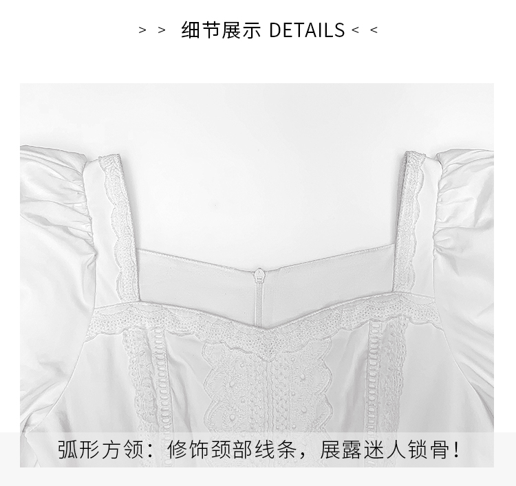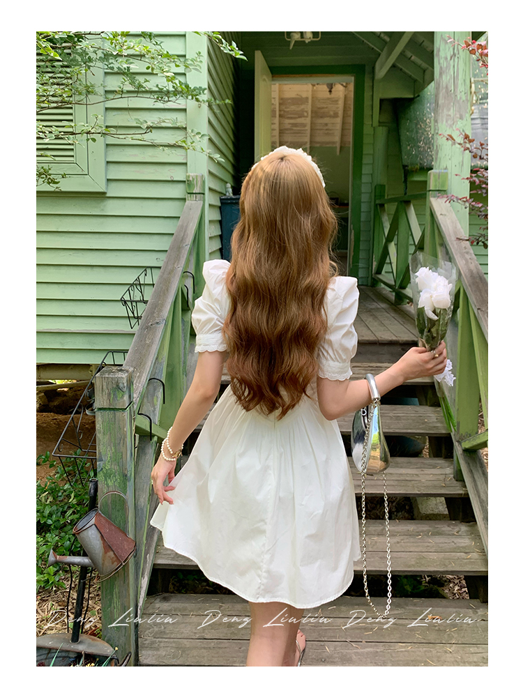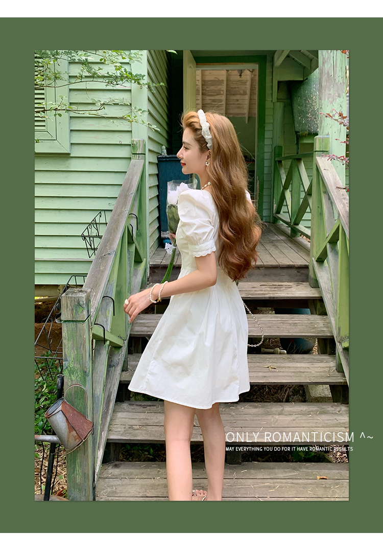 鄧六六法式初戀感領證小白裙顯瘦方領泡泡袖海邊度假白色連衣裙女