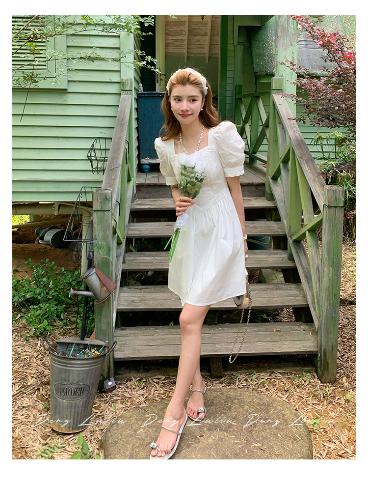 鄧六六法式初戀小白收腰顯瘦連衣裙
