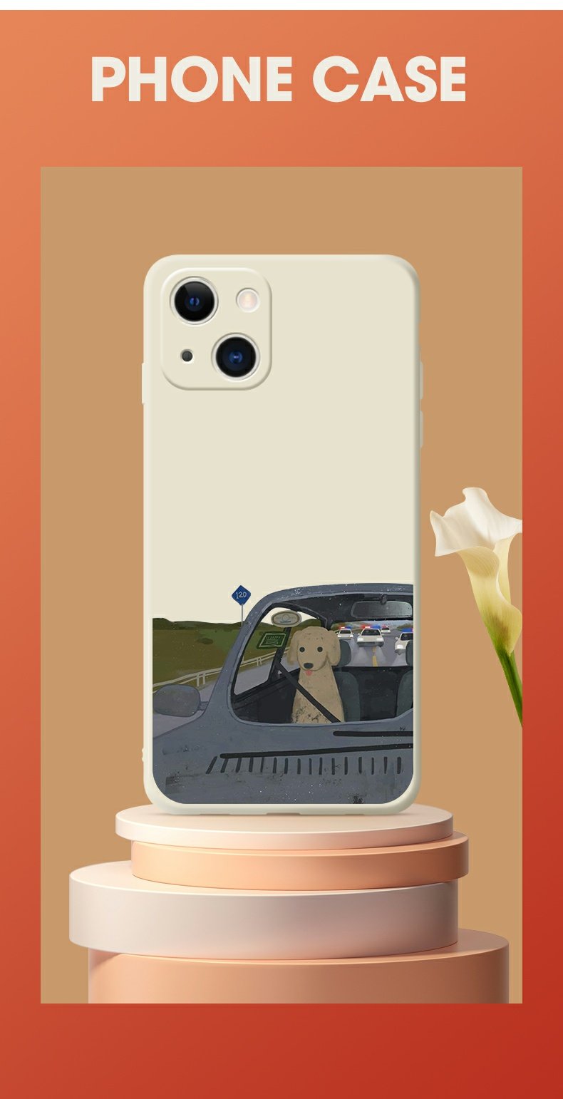 適用蘋果15新款液態硅膠情侶手機殼13promax創意治愈系插畫iPhone12白色情侶殼14pm可愛狗狗11pro全包防摔殼x