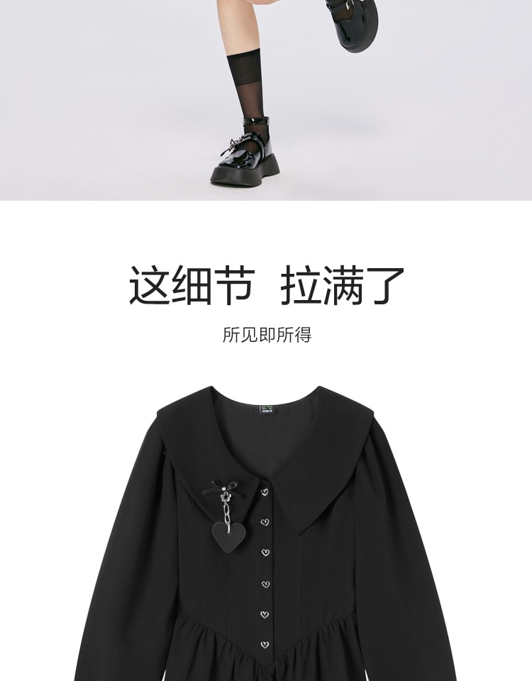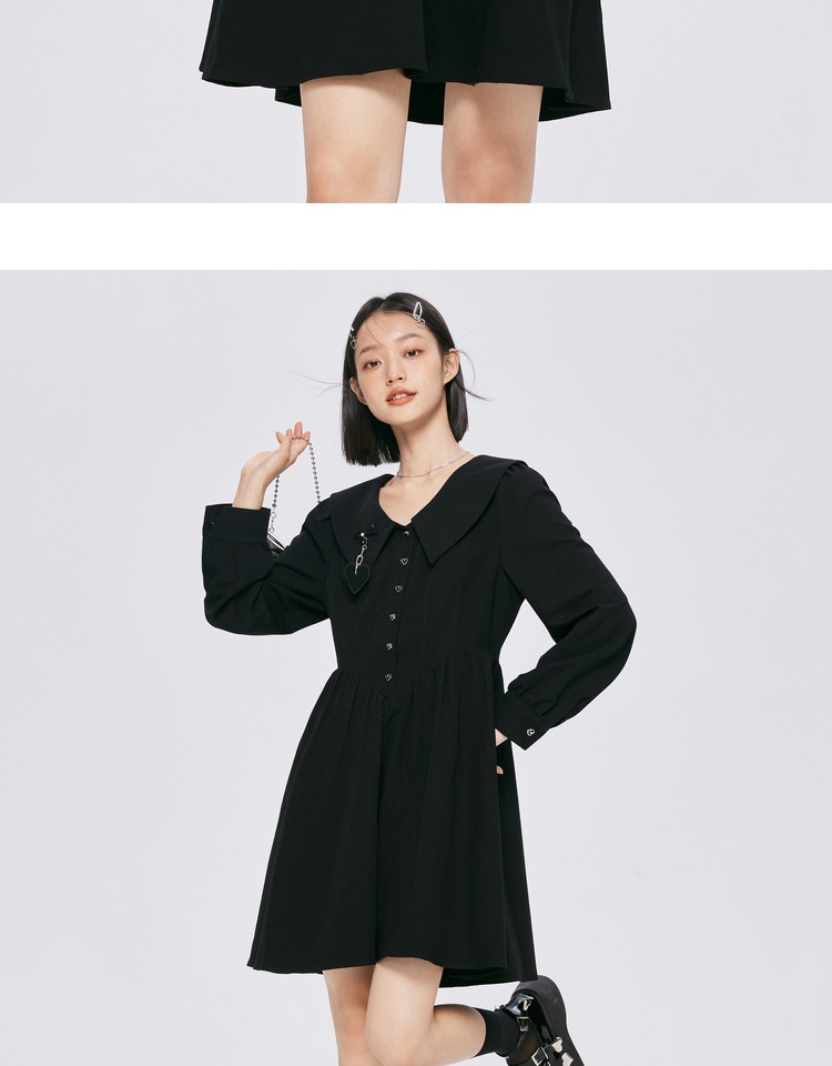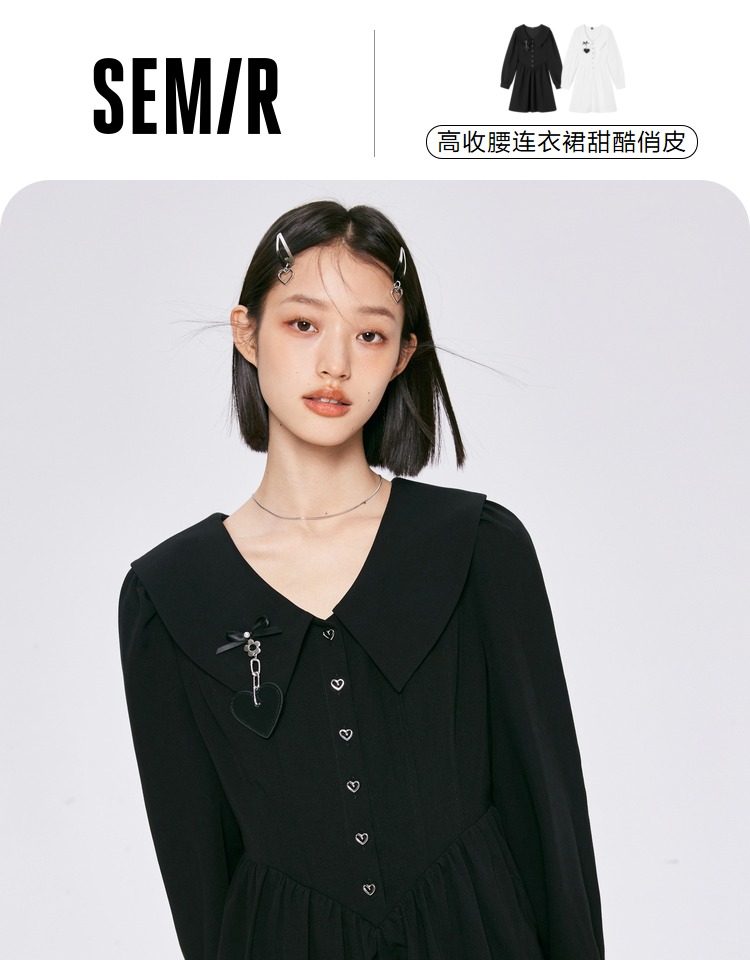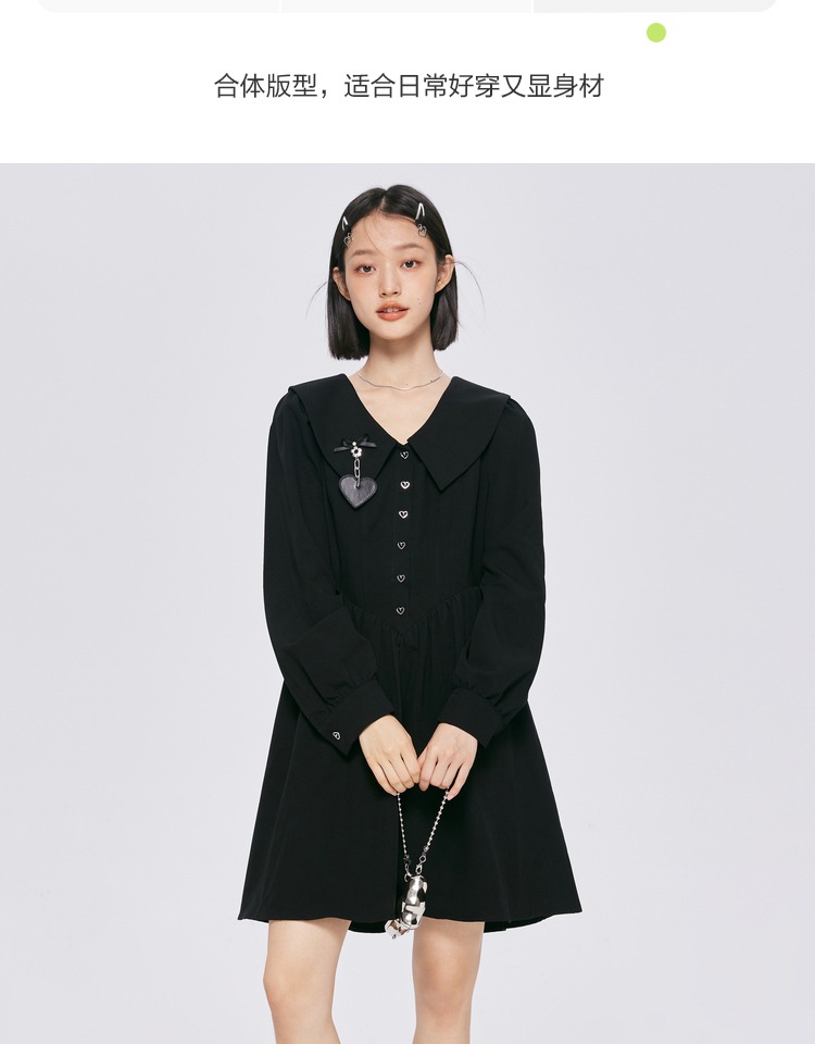 森馬連衣裙女愛心顯高顯瘦俏皮2022春秋新款甜酷女生翻領裙子百搭