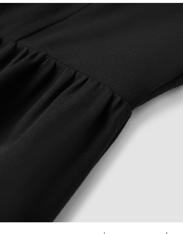 郭九九呢棉質黑色圓領長袖修身顯瘦名媛打底連衣裙女秋設計感長裙