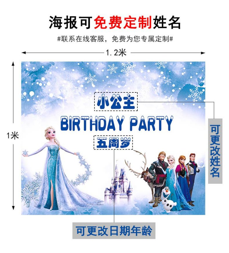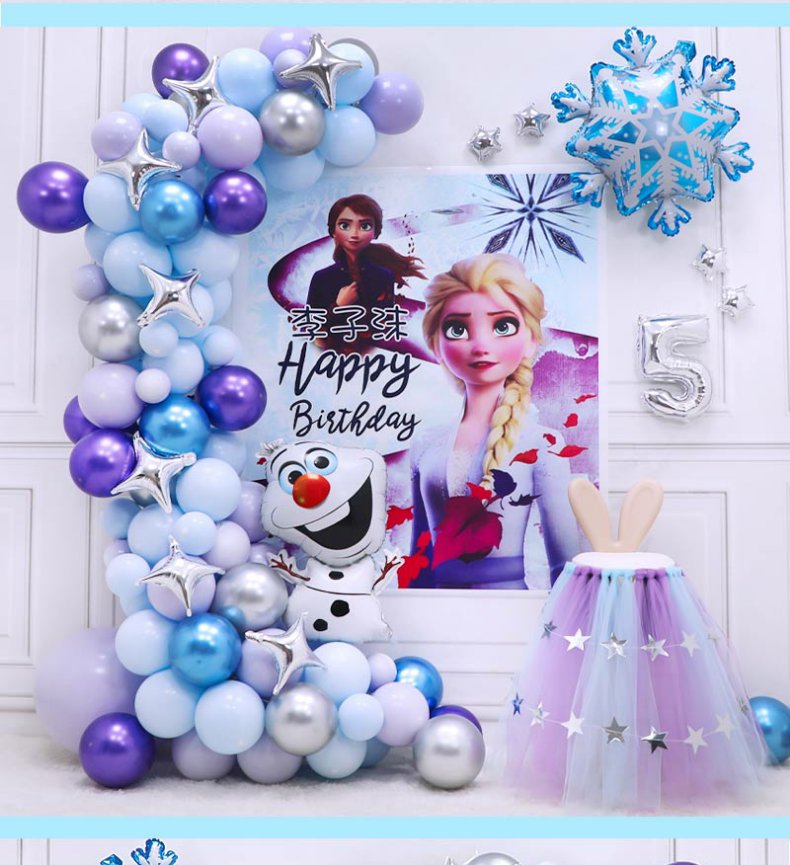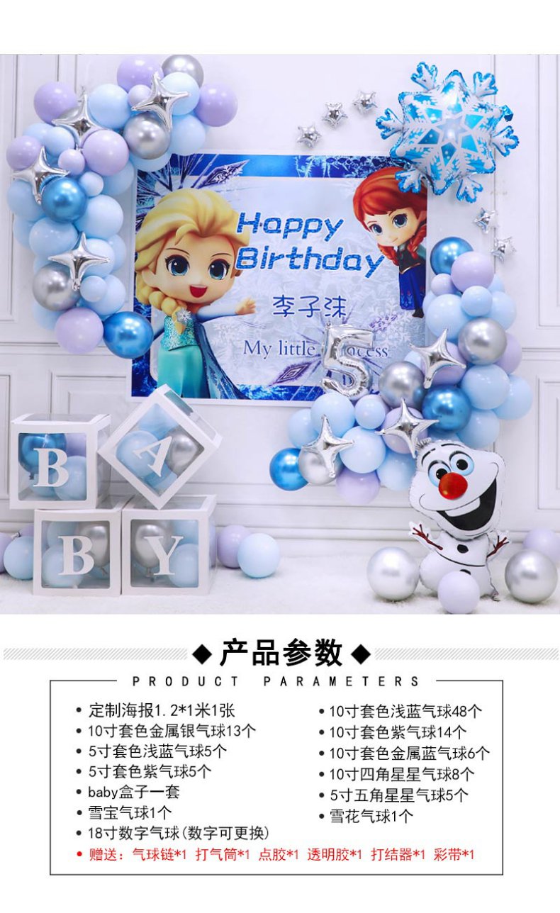 女孩冰雪奇緣主題布置裝飾場景生日氣球公主派對愛莎海報背景墻10