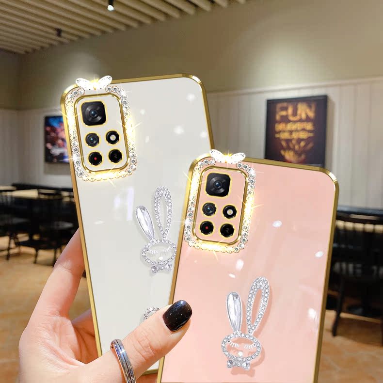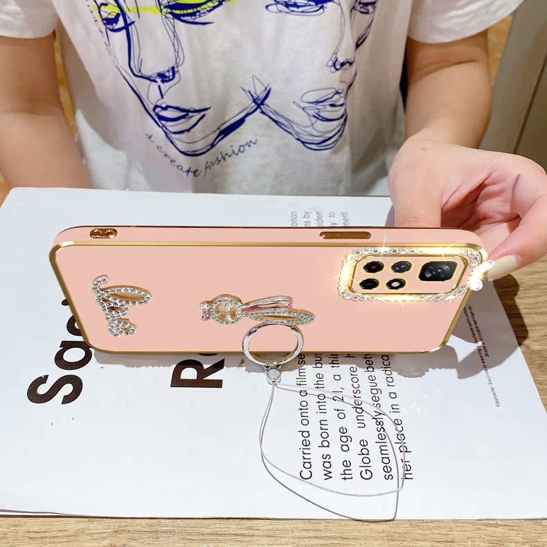 適用紅米Note11手機殼PRO鑲鉆小兔卡通水晶鏈子pro+支架環全包鏡頭女新款軟硅膠21091116AC防摔時尚潮保護套