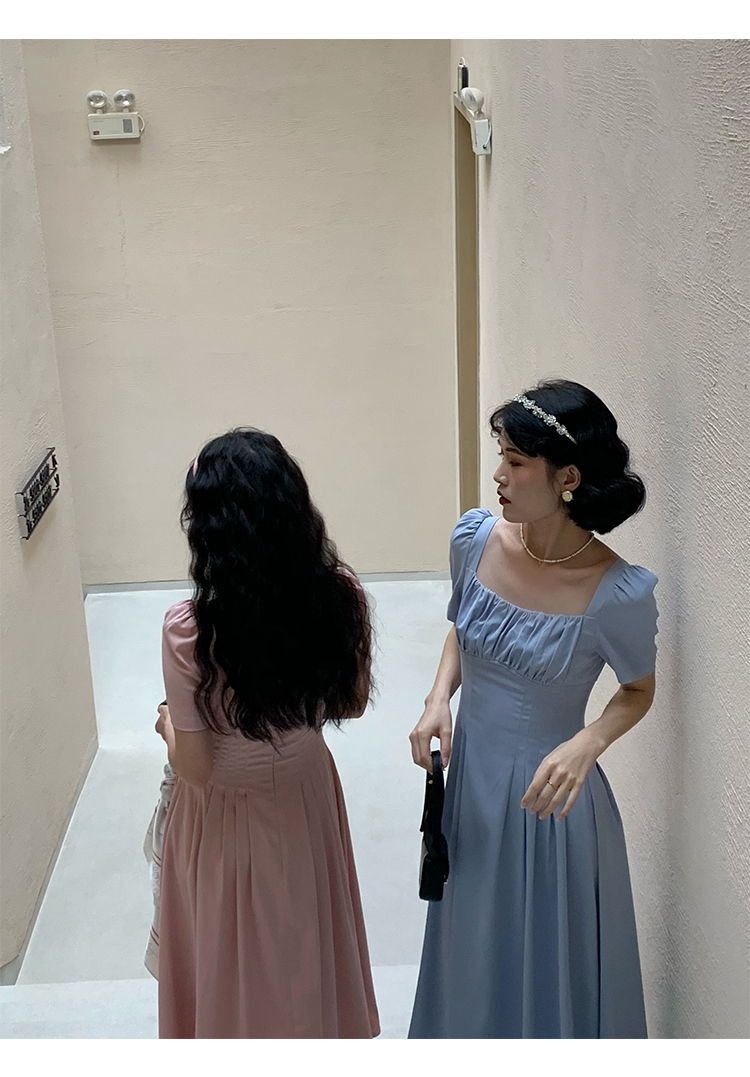 三個裁縫 夢幻禮遇 法式復古褶皺方領連衣裙超顯身材