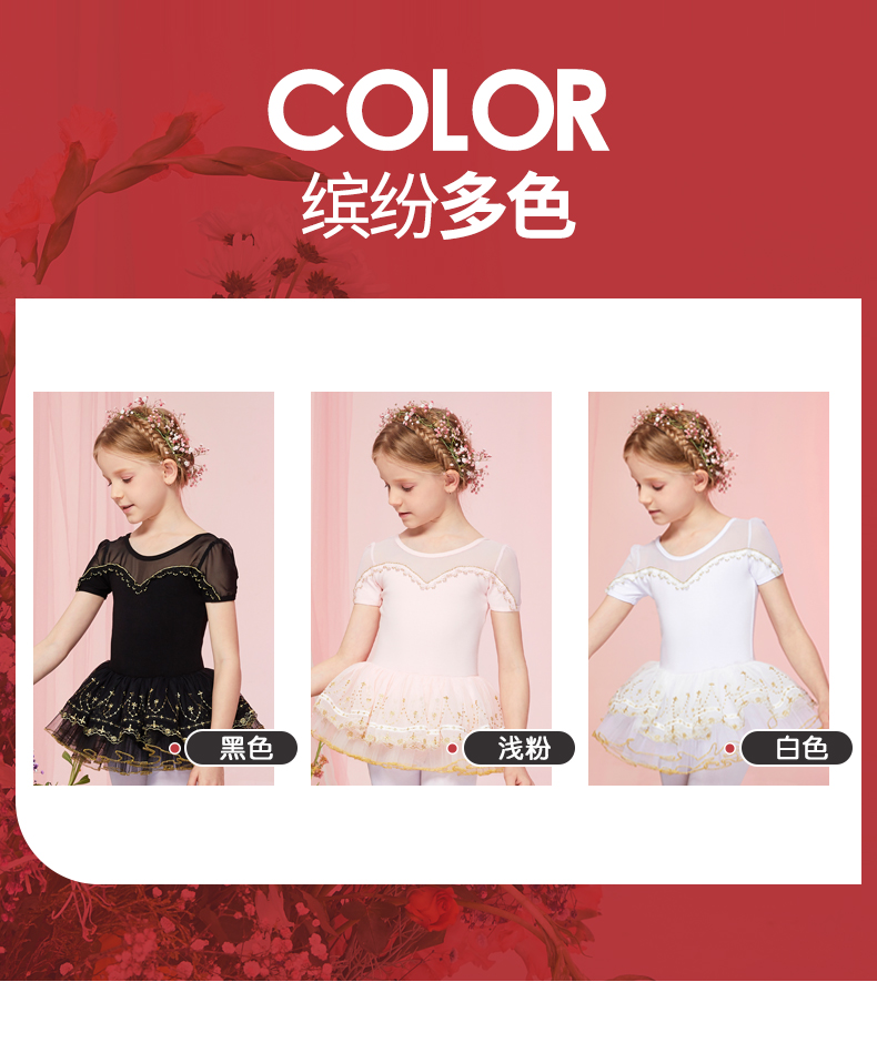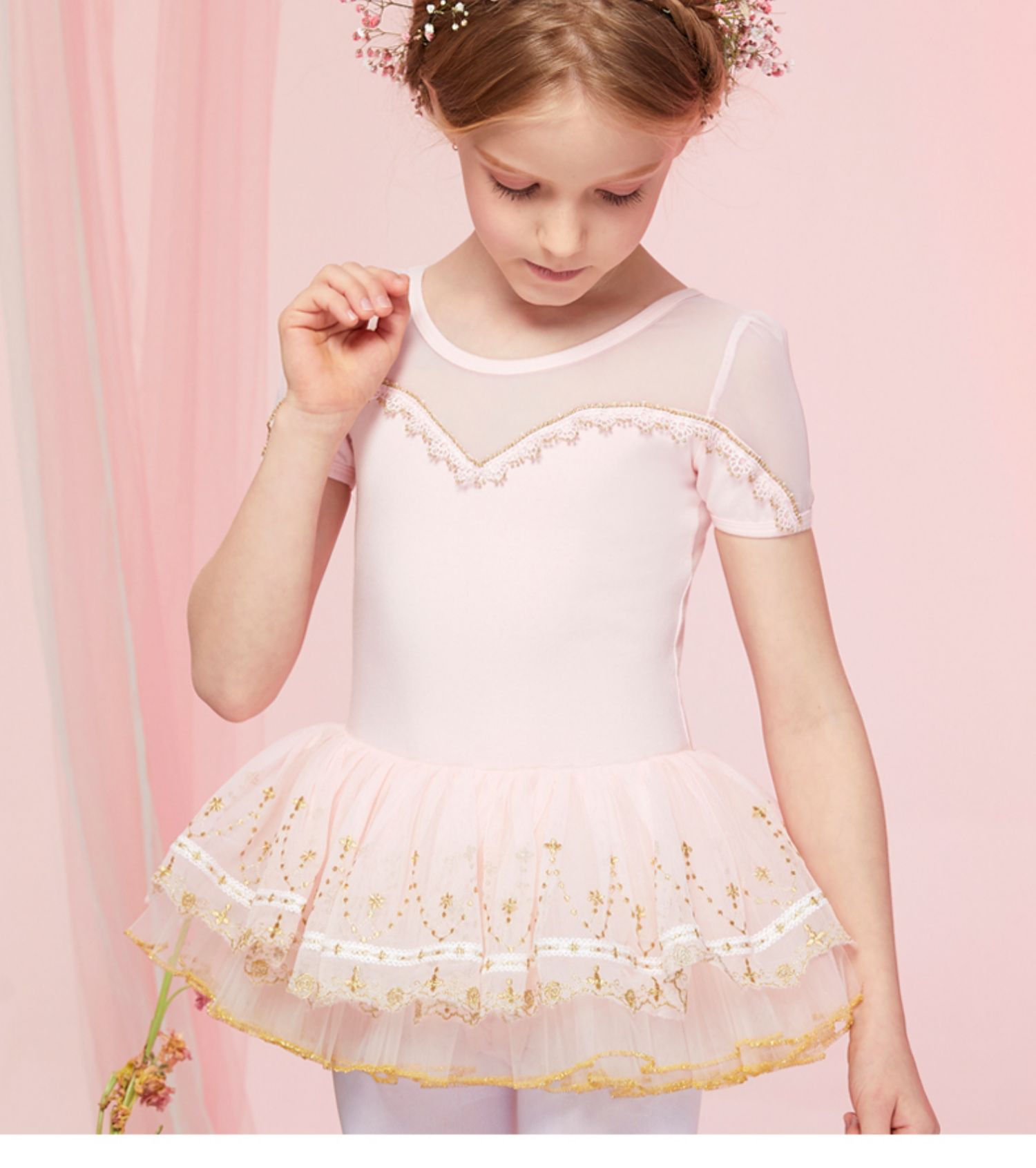 兒童女童芭蕾舞裙夏季短袖跳舞裙