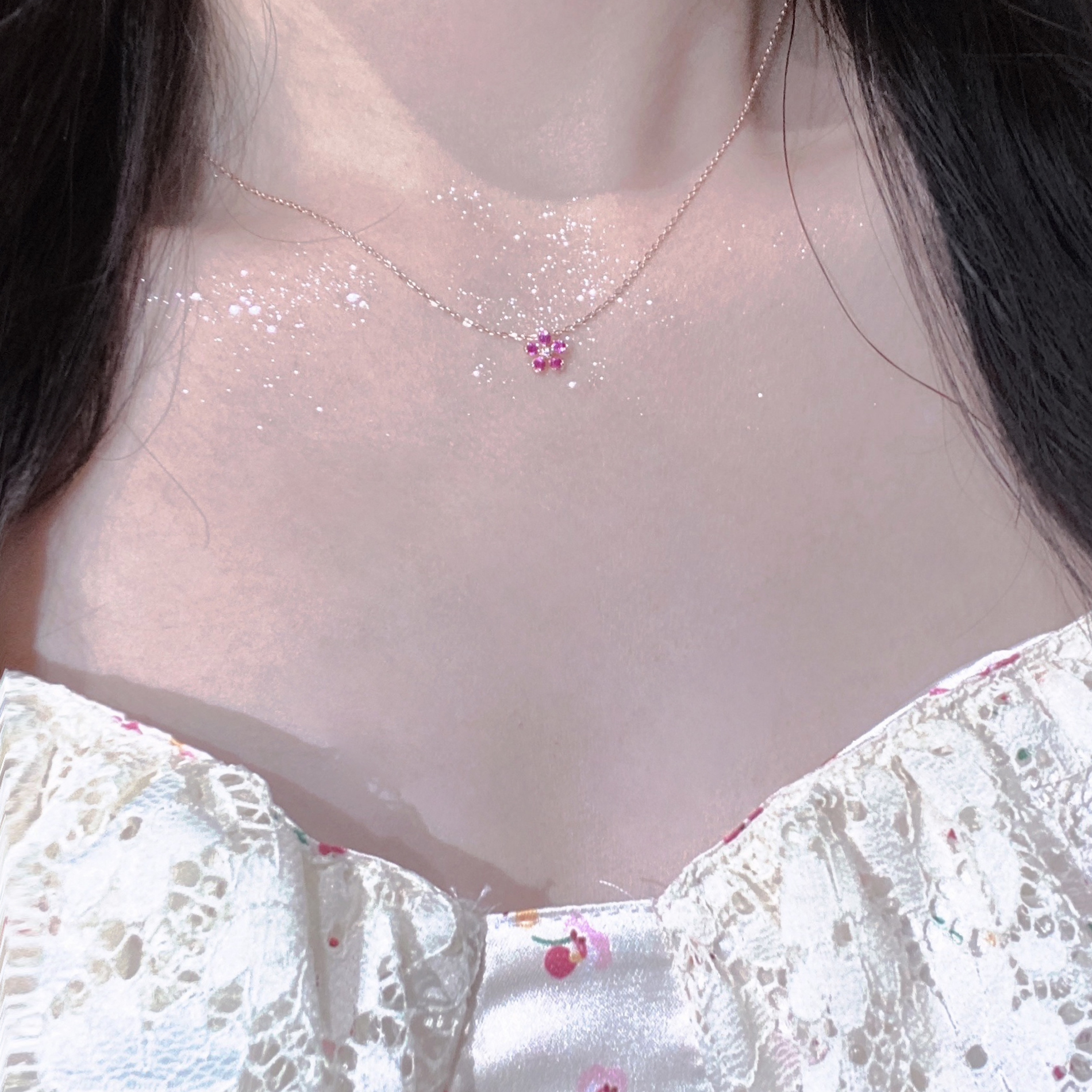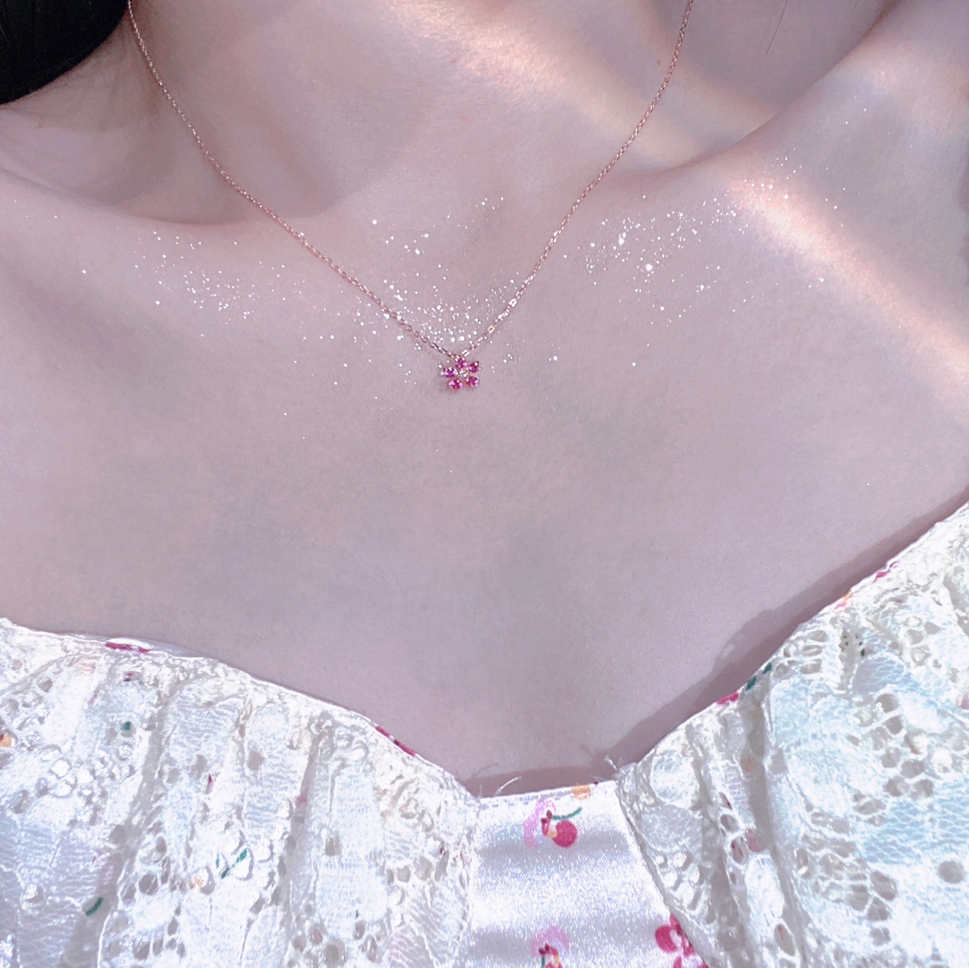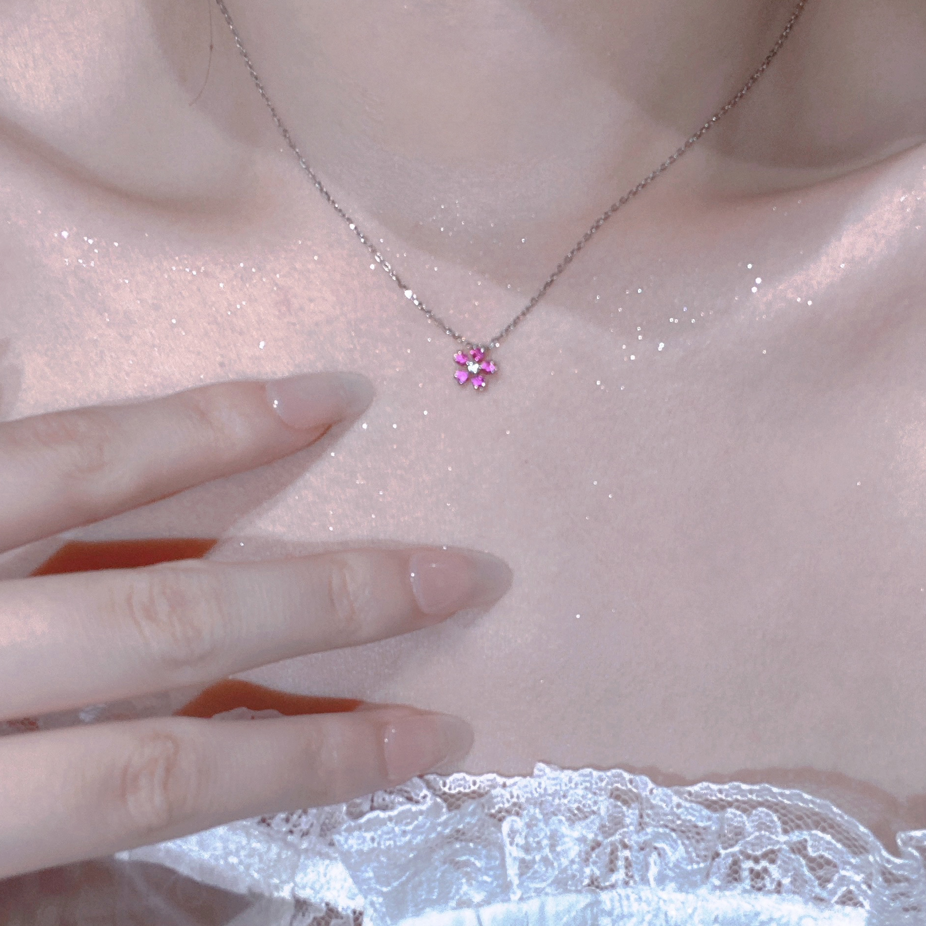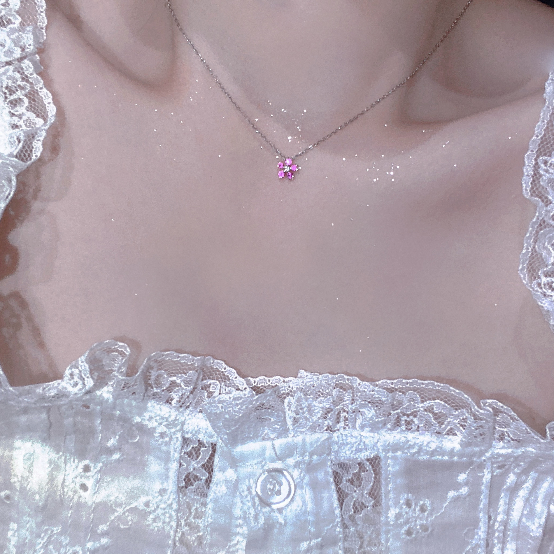 「櫻花落下」玫瑰金花朵銀飾925純銀項鏈可愛夏天鎖骨鏈頸鏈女生