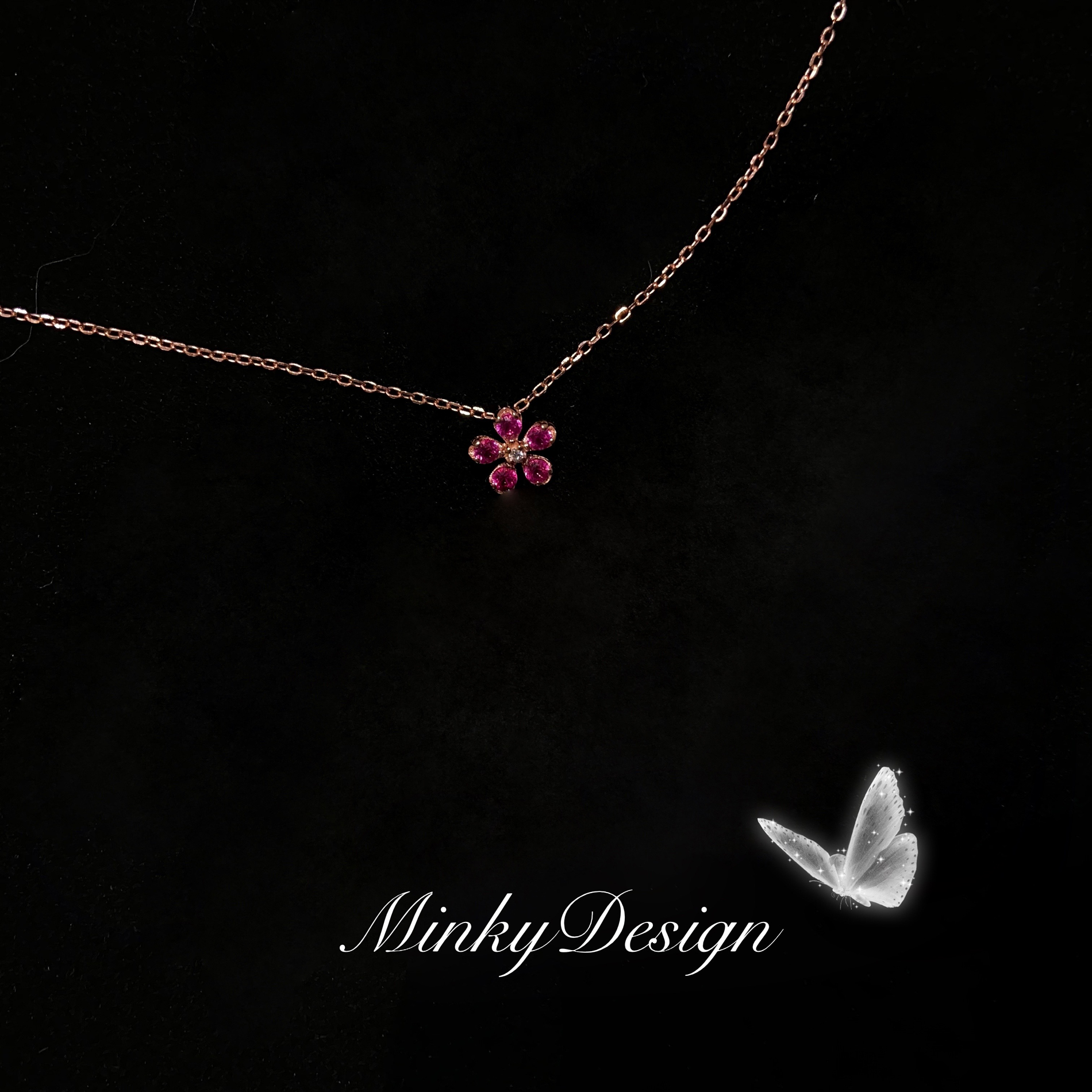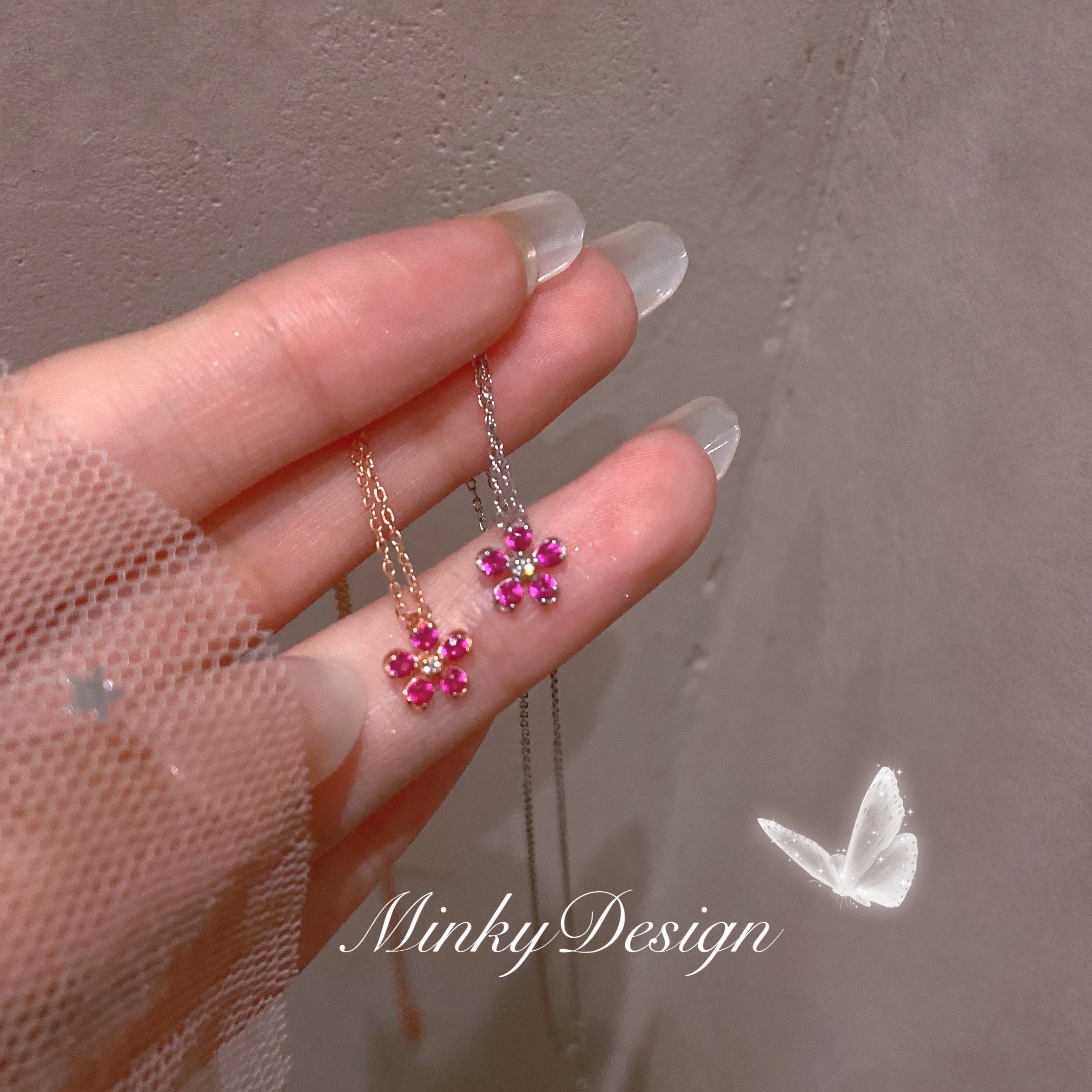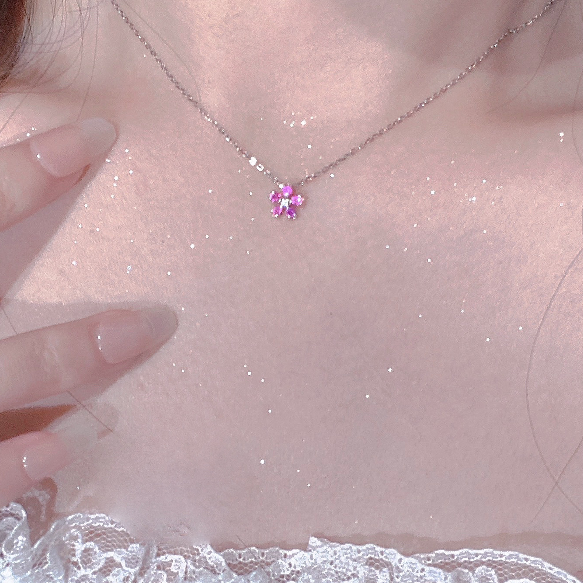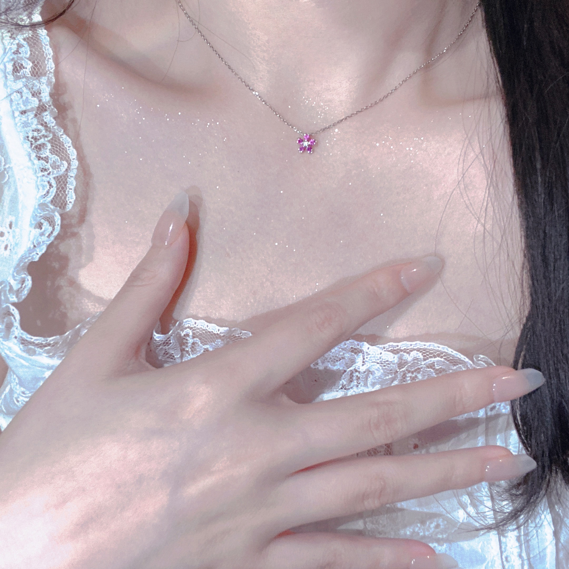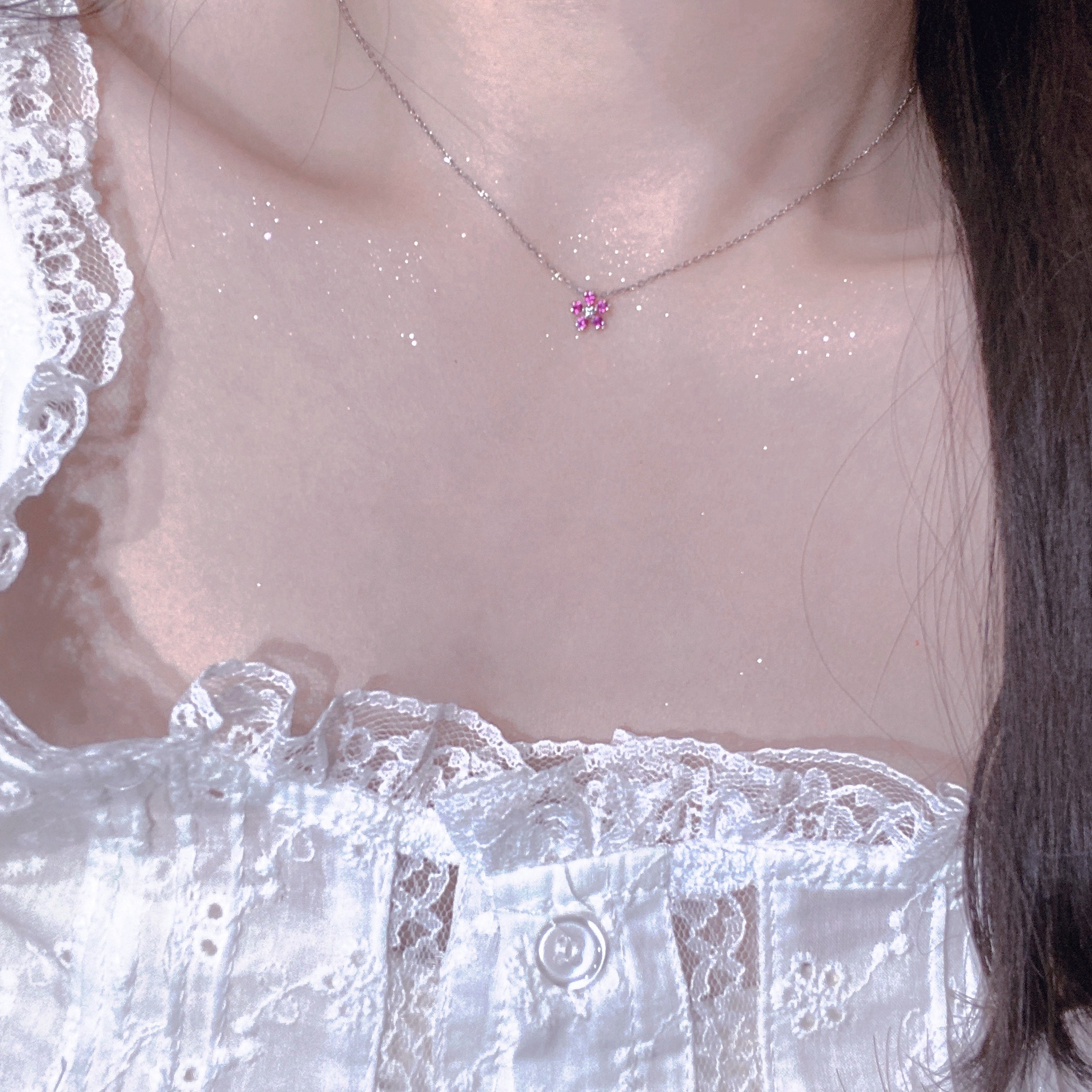 「櫻花落下」玫瑰金花朵銀飾925純銀項鏈可愛夏天鎖骨鏈頸鏈女生