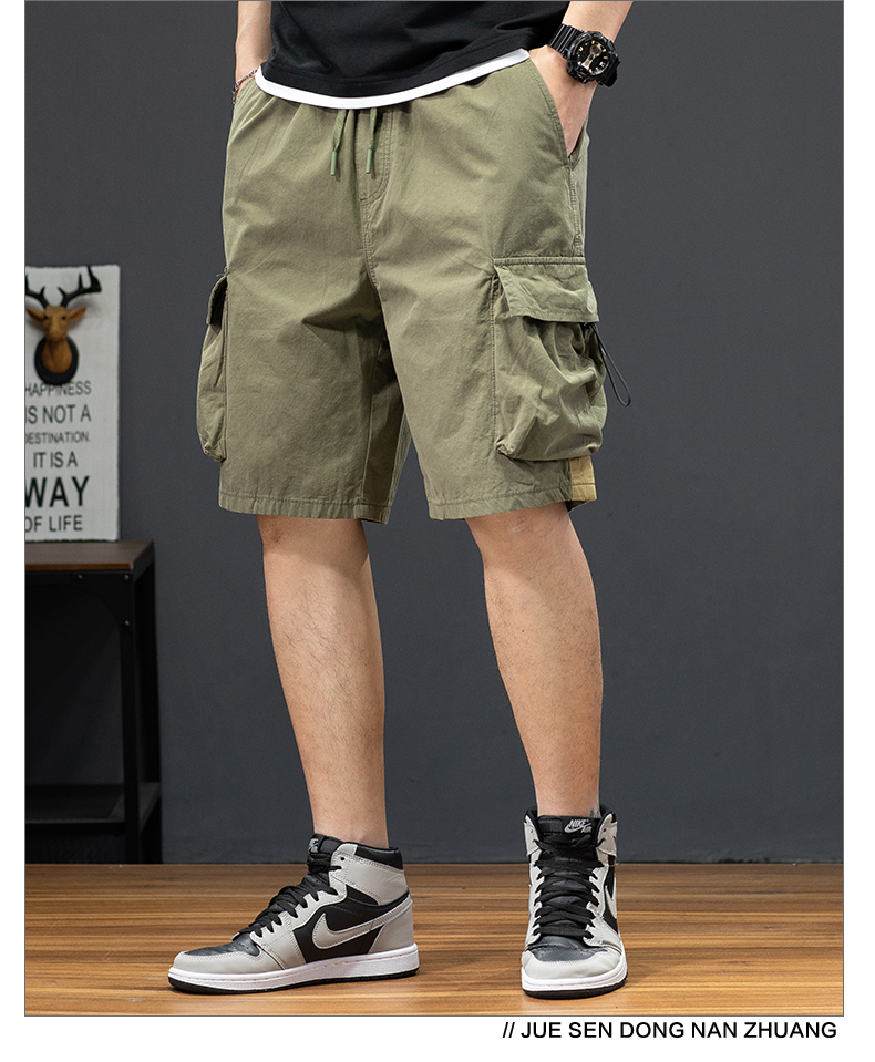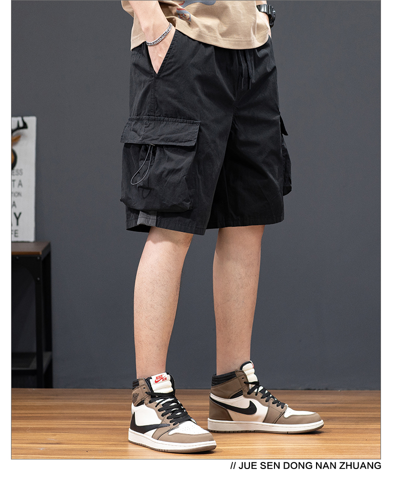 2023簡約日系潮牌夏季抽繩休閑寬松工裝五分褲子純色短褲男中褲