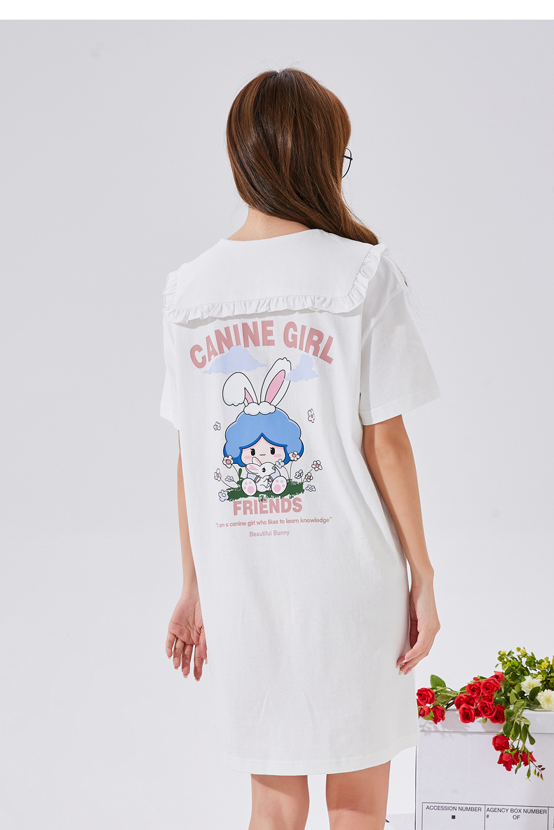 唐獅犬系女孩連衣裙夏裝新款女海軍領后背印花寬松設計T恤裙