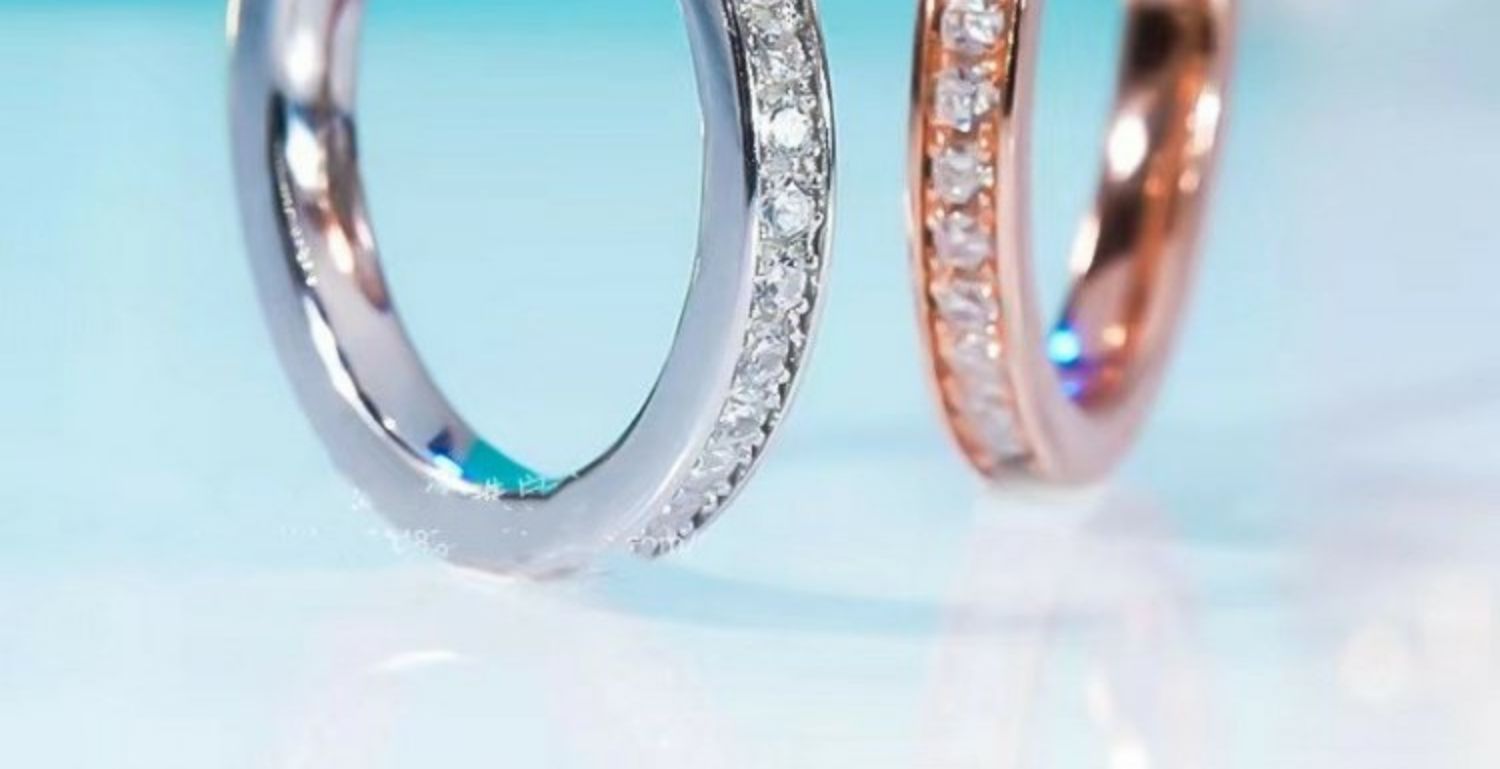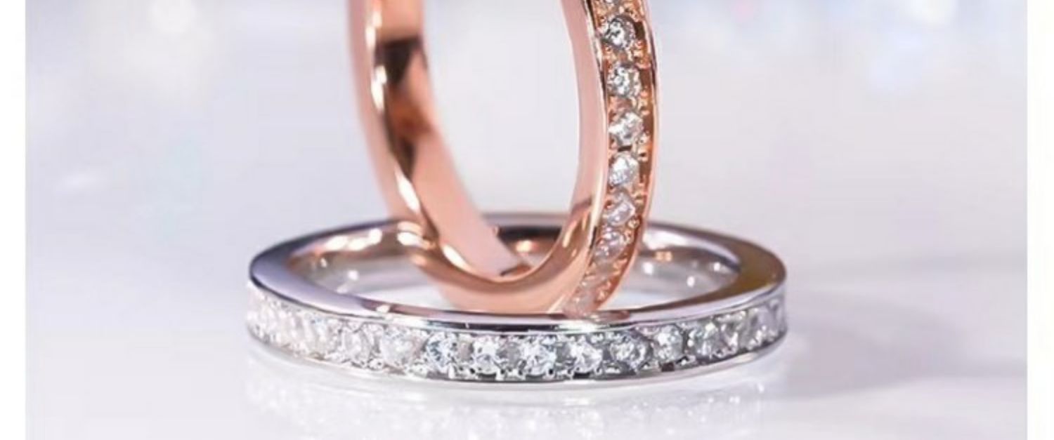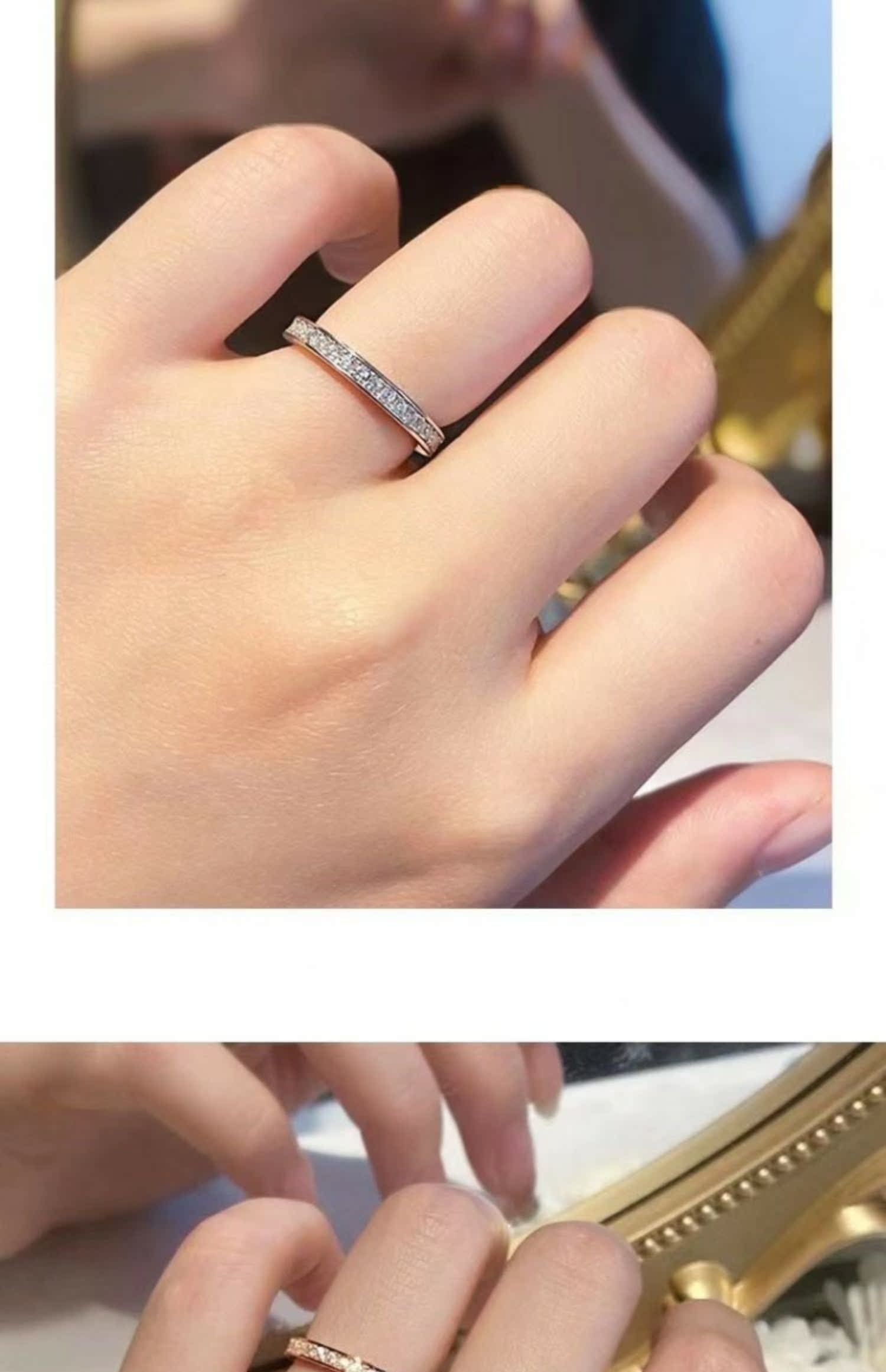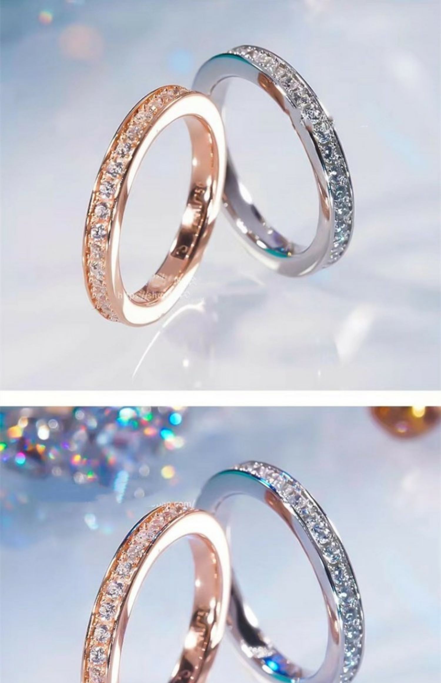PT950鉑金進口D色莫桑石滿鉆情侶對戒玫瑰金素圈排鉆輕奢戒環新