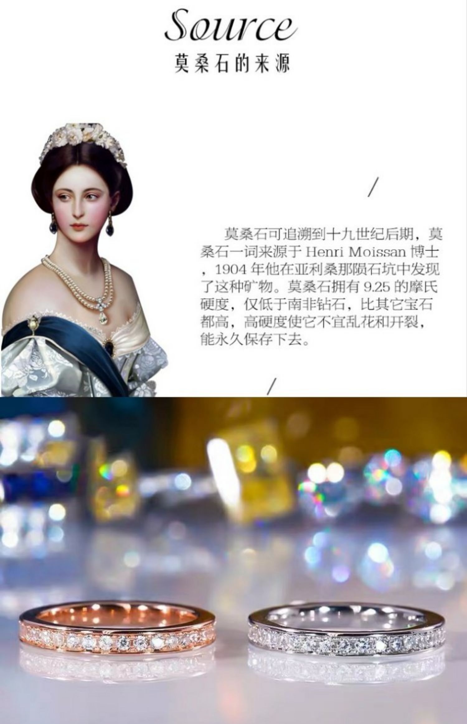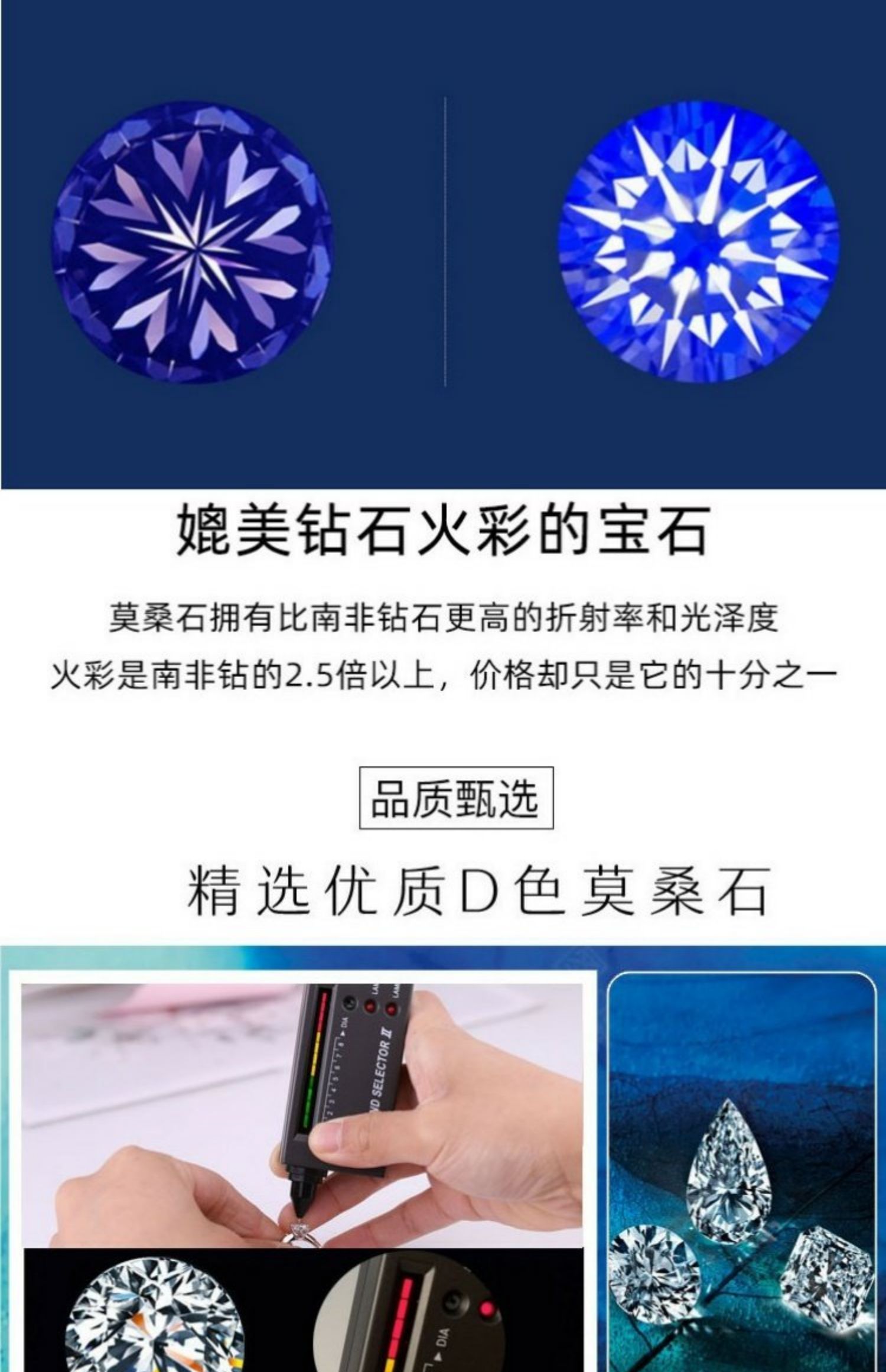 pt950鉑金進口莫桑石簡約冰糖鉆戒