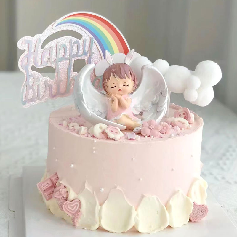 唯美七色彩虹烘焙蛋糕裝飾插件生日