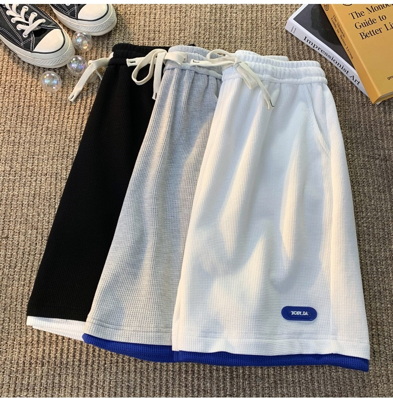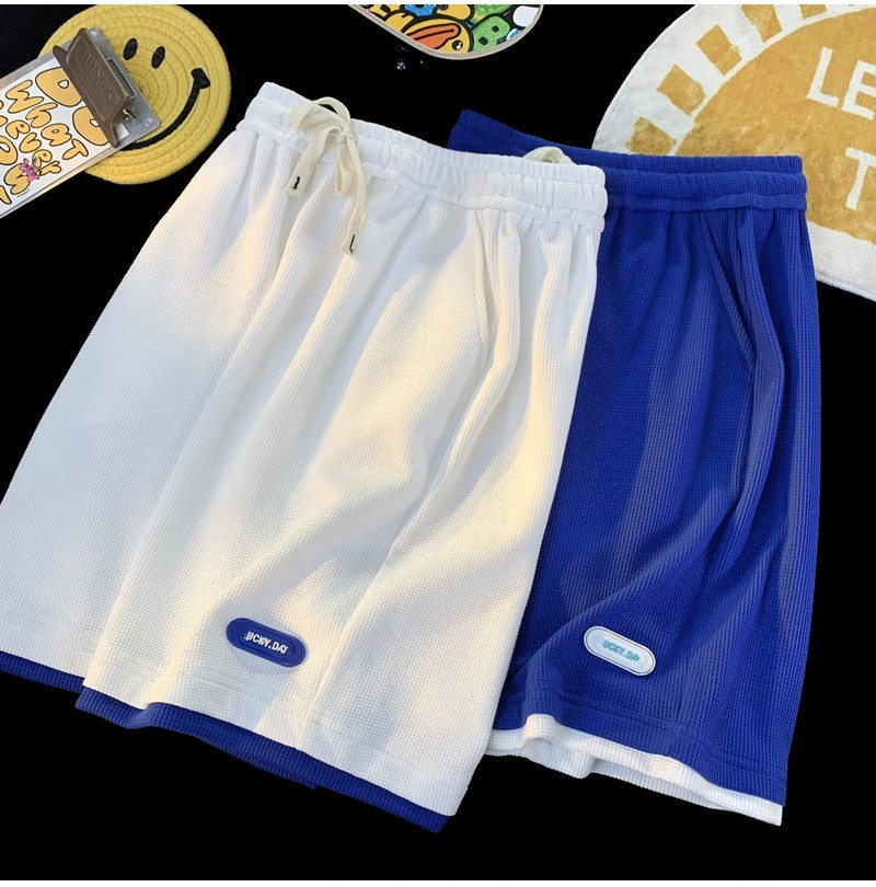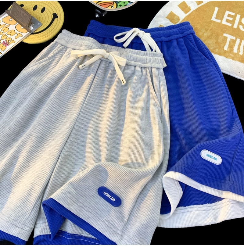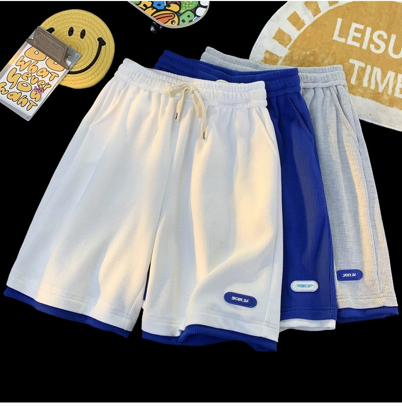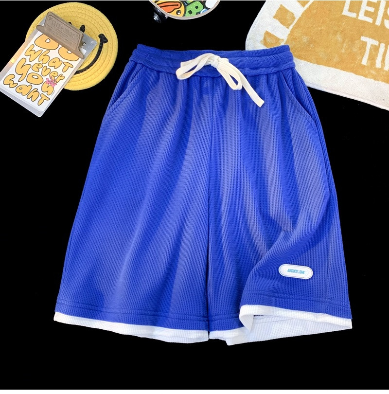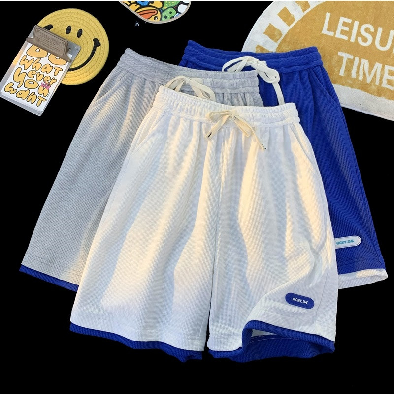 華夫格運動短褲男士夏季薄款高品質假兩件設計感高克重磅休閑衛褲