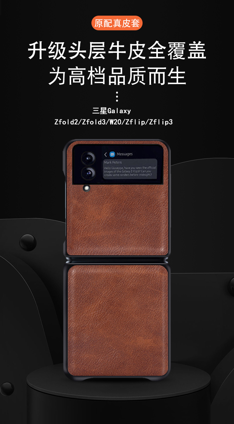 適用于三星zflip4手機殼真皮商務三星zflip5保護套個性創意w23flip男女zflip1代時尚2代高檔皮套Flip3經典W23