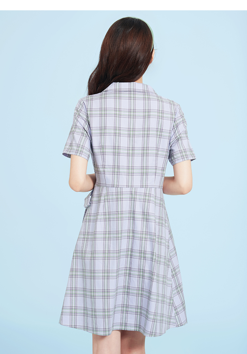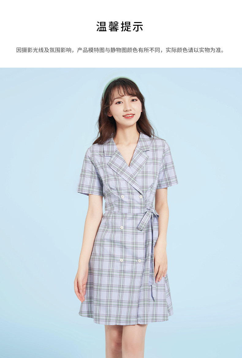 熱風2022年夏季新款女士格紋西裝裙氣質優雅格紋紐扣系帶短袖中腰