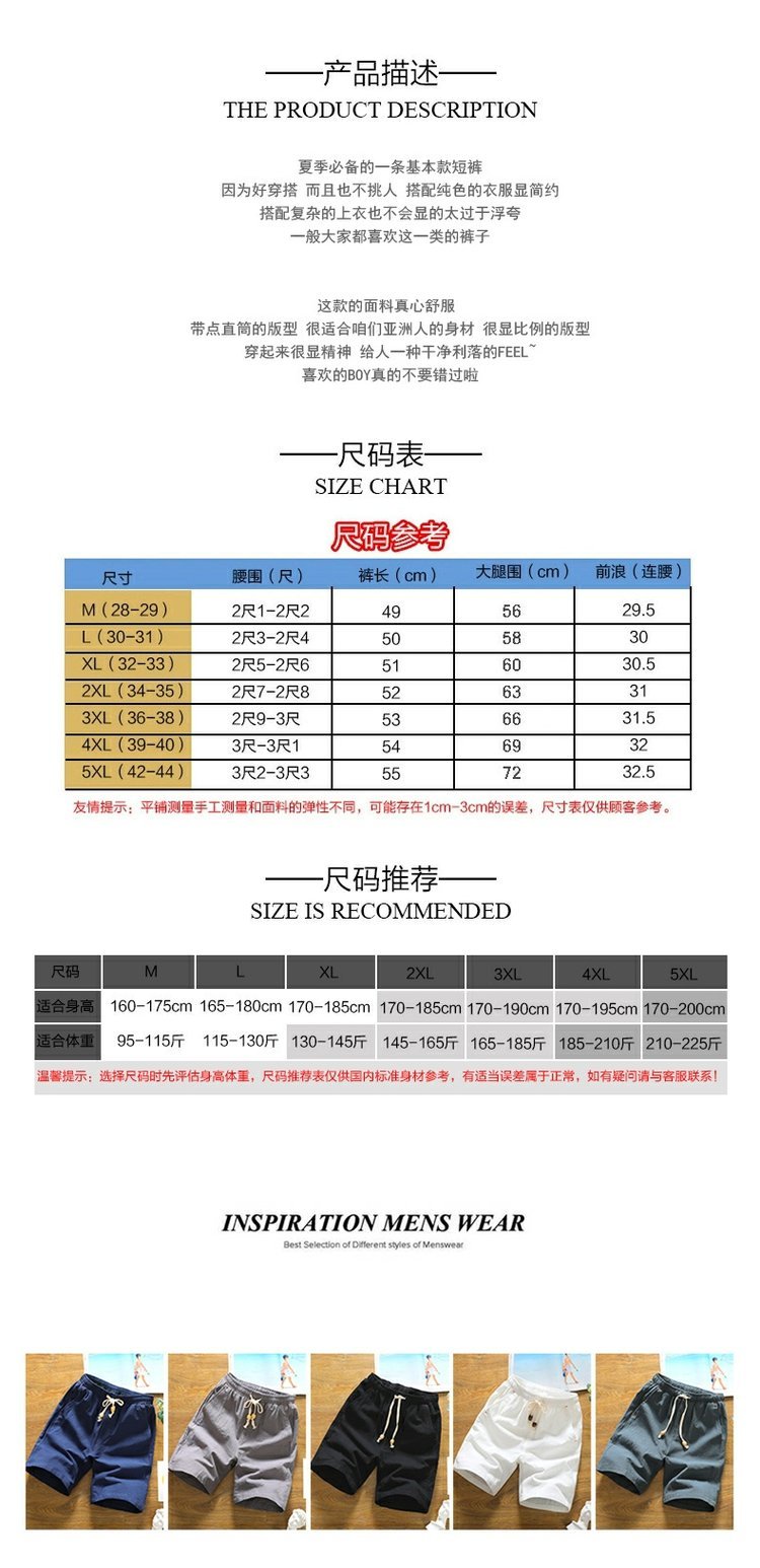 男大碼純色直筒沙灘五分褲亞麻短褲