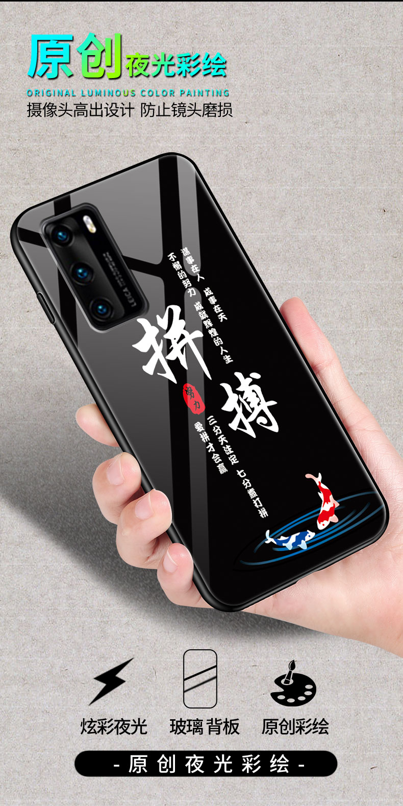 適用華為p40手機殼hwp40夜光華為p4o玻璃化為p40硬殼p四十全包Huaweip40勵志ANA-AN00防摔hwp4o男潮文字潮