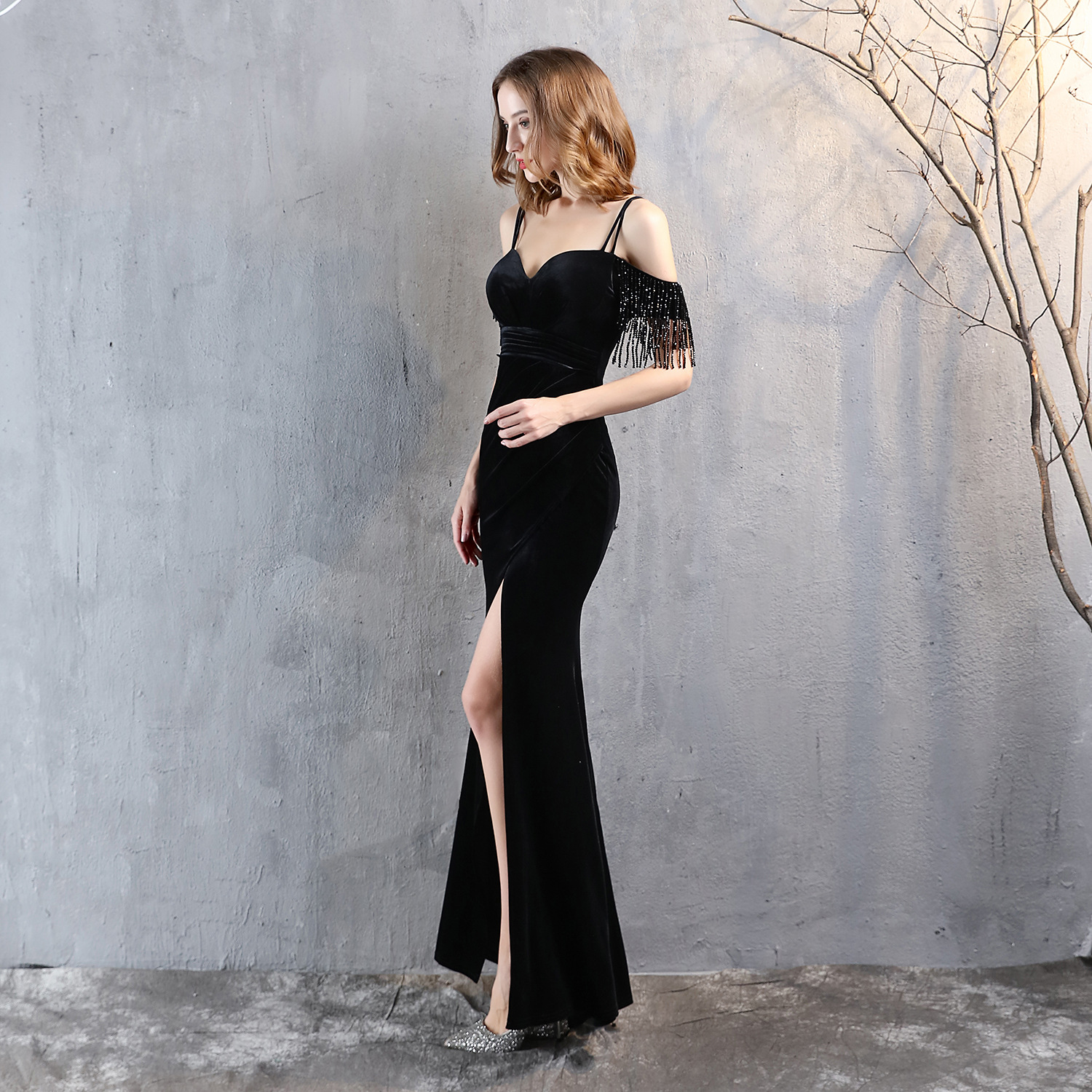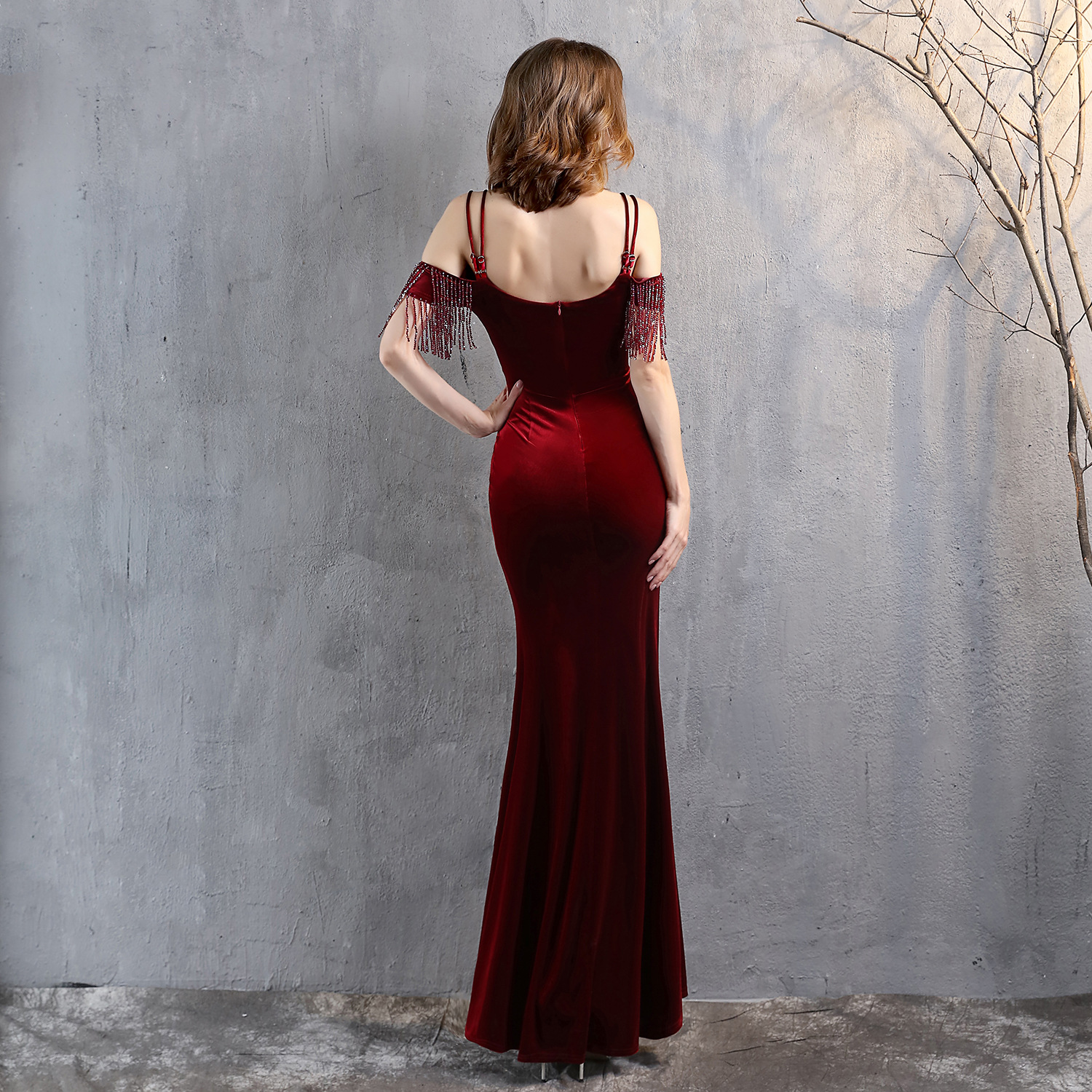 魚尾長裙晚禮服女驚艷名媛氣質高端優雅高級感宴會年會絲絨連衣裙