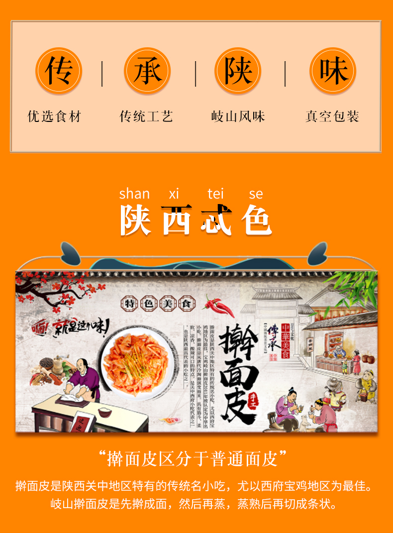 陜西特產岐山搟面皮寶雞涼皮速食紅油面皮地方特色美食小吃含面筋