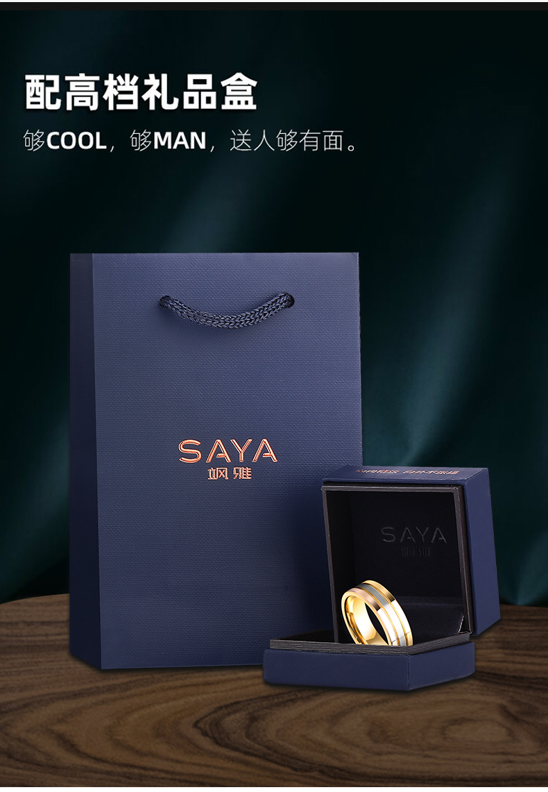 颯雅鎢金戒指男士鍍黃金凹指環女高級感簡約時尚潮男個性食指男戒